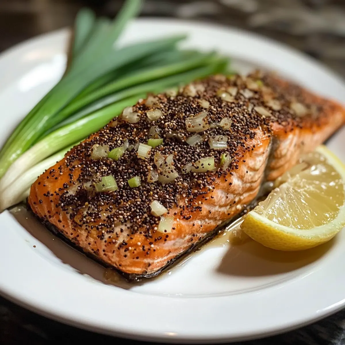 Zitronen-Knoblauch-Quinoa: Aromatisierter Quinoa mit Zitrone und Knoblauch ist eine exquisite Beilage, die dem Gericht eine spritzige Note verleiht. Er harmoniert hervorragend mit dem Lachs und ergänzt die Aromen perfekt.