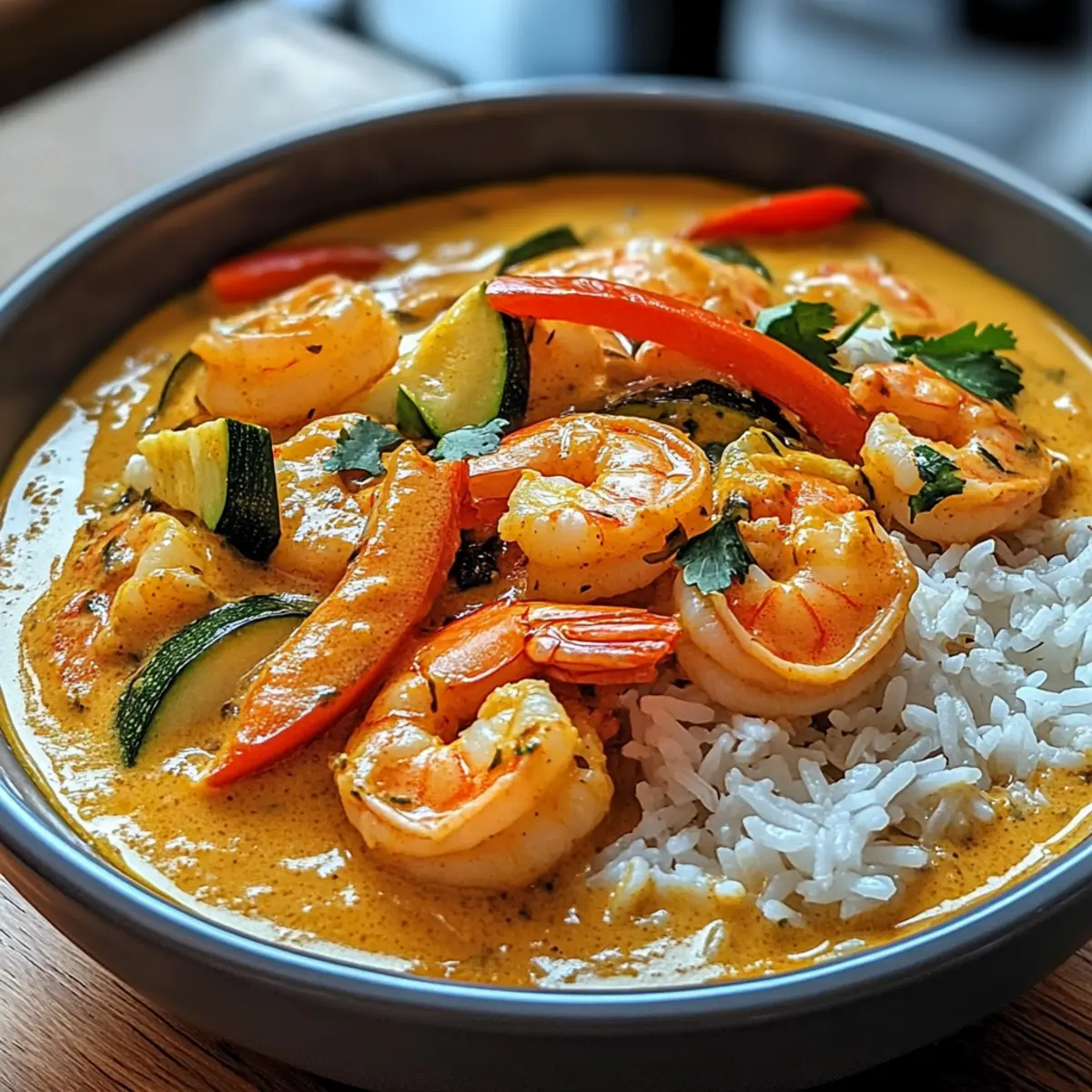 Genießt dieses aromatische Garnelen-Curry mit Kokosmilch und Reis und lasst euch von den asiatischen Aromen berauschen!