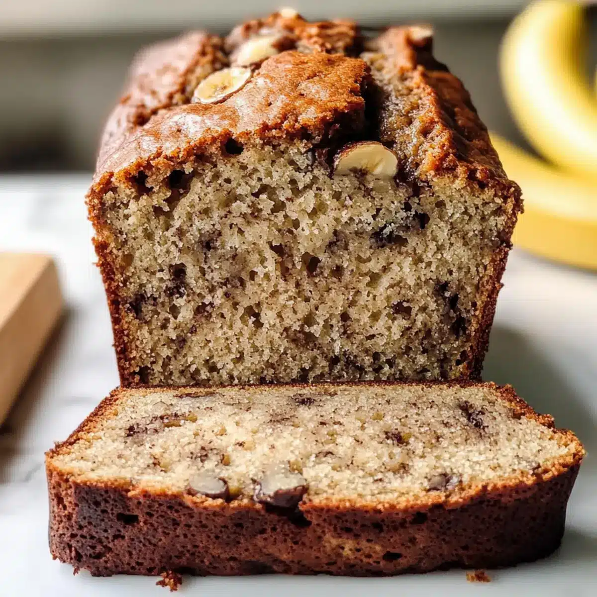 Schokoladenversion: Füge zuckersüße Schokoladenstückchen hinzu, um diesem Bananenbrot eine himmlische Schokoladennote zu verleihen.