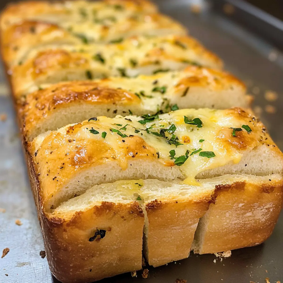 Knoblauch- und Kräuterbrot mit Käse genießen