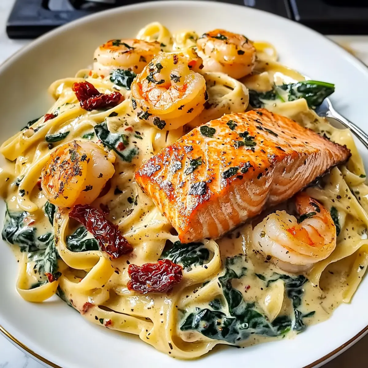 Cremige toskanische Lachs- und Garnelenpasta zaubern