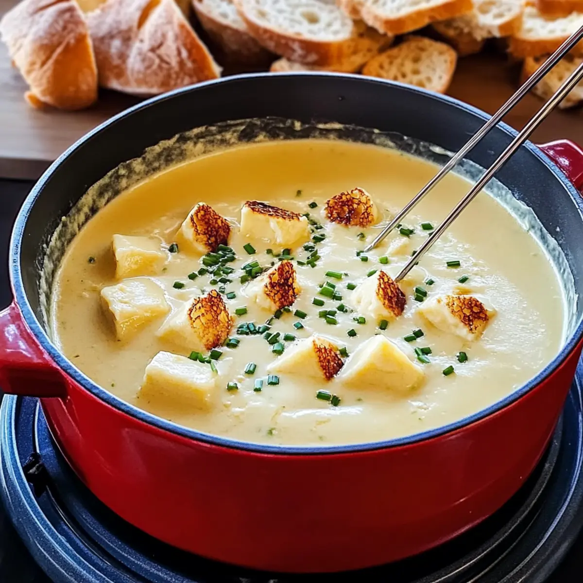 Käsefondue mit Schnittlauch für geselliges Beisammensein