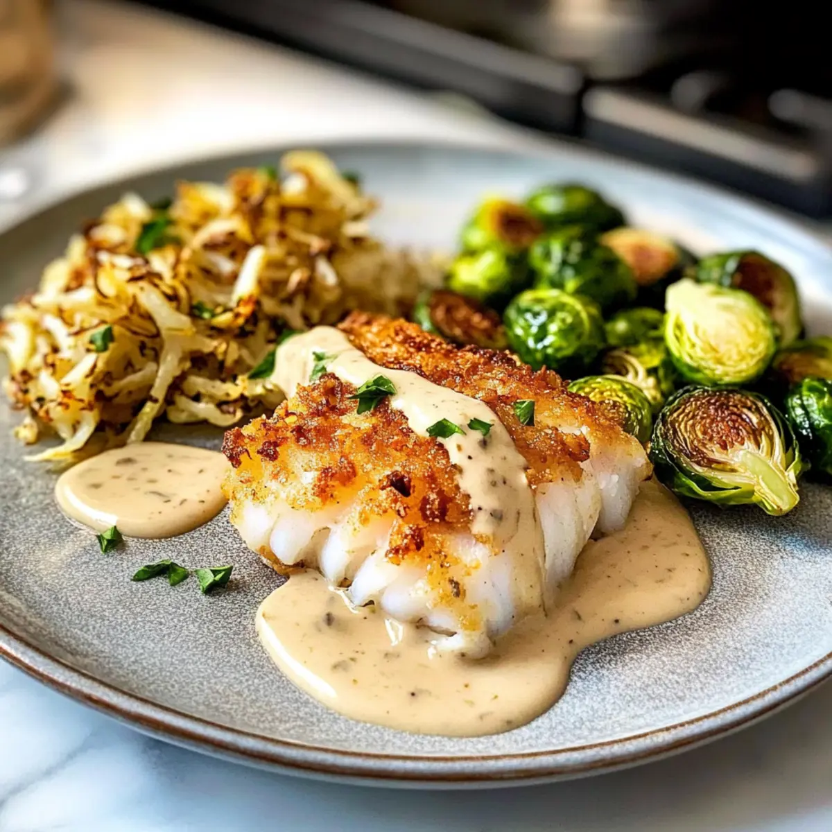 Kabeljau in der Kartoffelkruste mit Senfsauce genießen