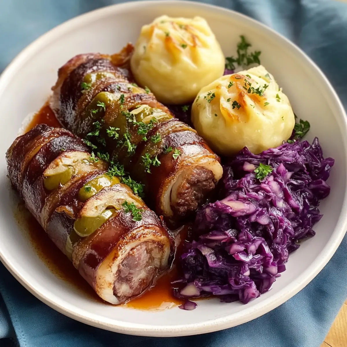 Rinderrouladen mit Rotkohl und hausgemachten Knödeln