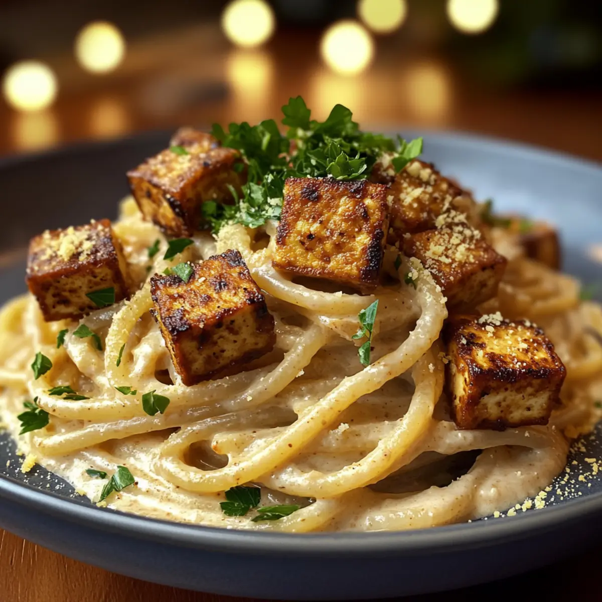 Geräucherte Tofu-Carbonara in 20 Minuten genießen