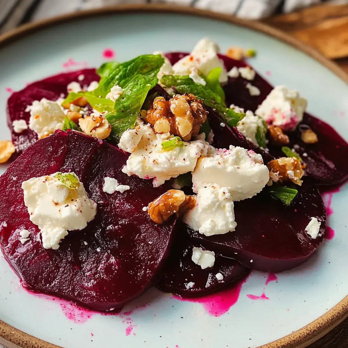 Marinierter roher Rote-Bete-Salat mit Feta und Walnüssen