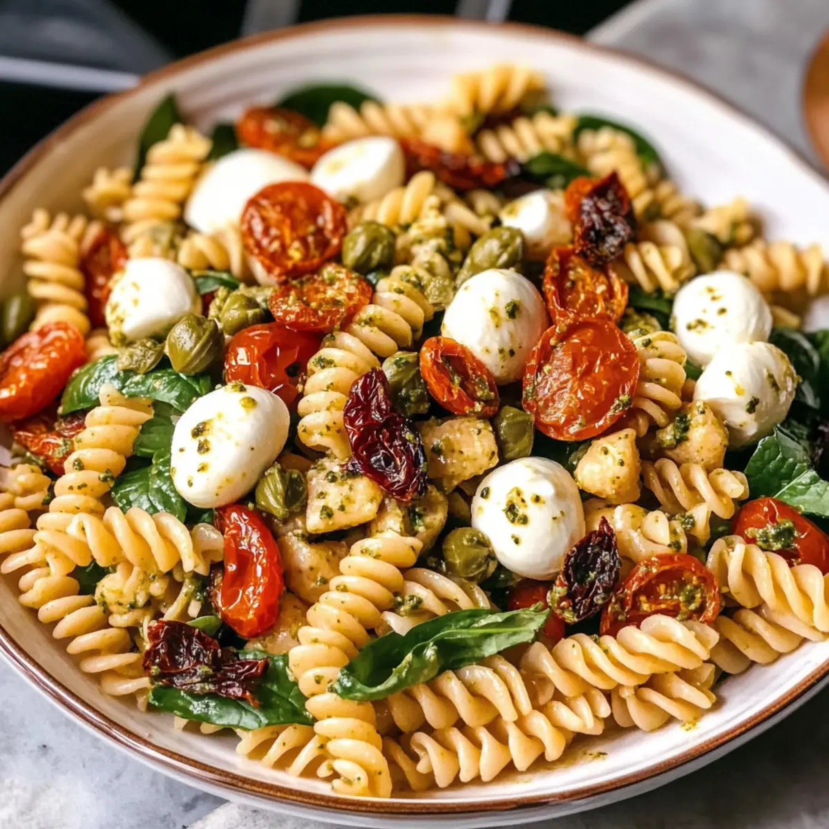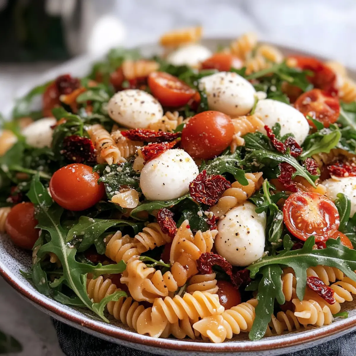 Mediterraner Nudelsalat mit getrockneten Tomaten und Mozzarella