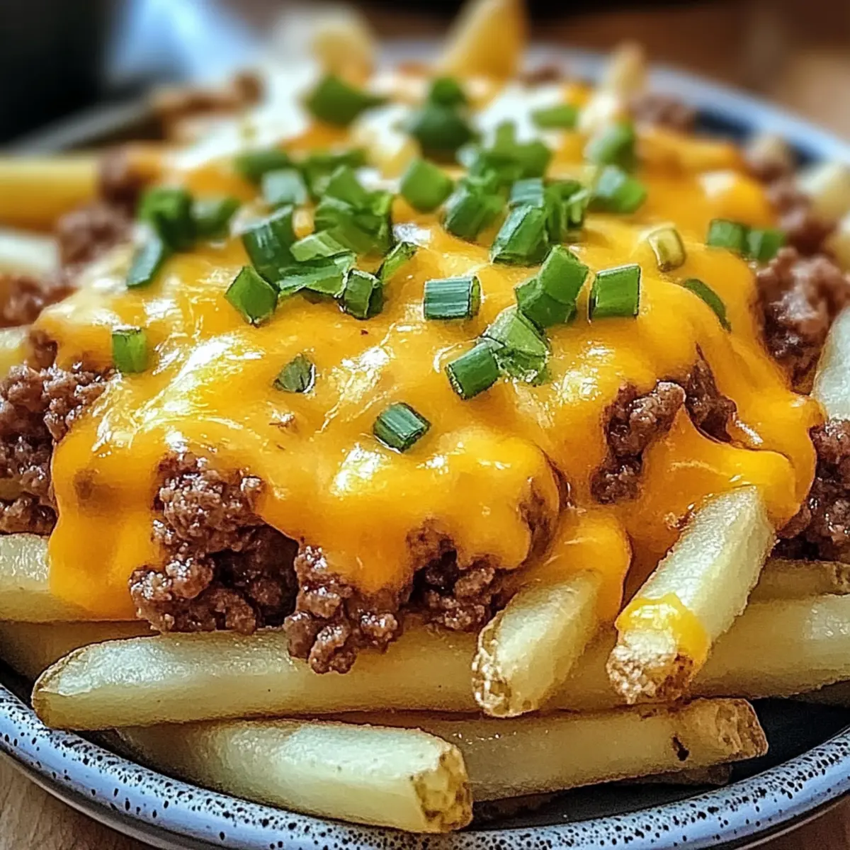 Beladene Pommes Frites mit Hackfleisch und Cheddar genießen