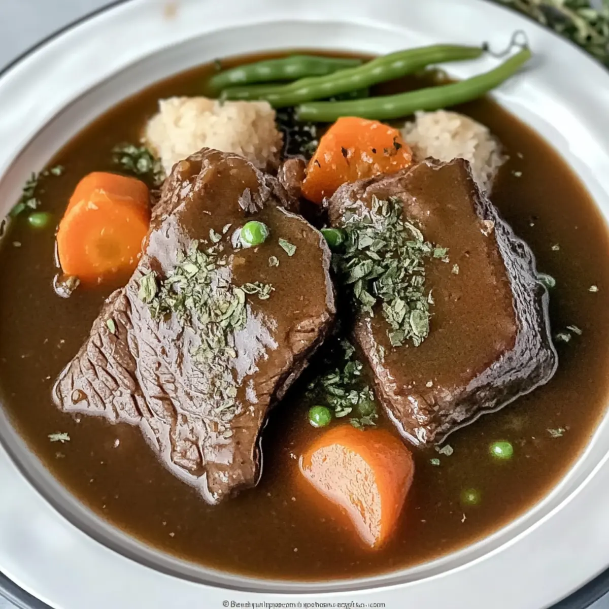 Einfachheit: Die Zubereitung ist kinderleicht und erfordert nur grundlegende Kochkenntnisse, ideal für jeden, derdie gerne zuhause kocht. Vielseitigkeit: Dieses Rezept lässt sich leicht anpassen – fügt einfach Gemüse hinzu oder wählt eine alkoholfreie Variante für besondere Anlässe. Wohlfühlgeschmack: Die Kombination aus zartem Rindfleisch und herzhaftem Gravy sorgt für einen herzlichen Genuss, der jeden beim ersten Bissen begeistert. Zeitersparnis: Der Slow-Cooker erledigt die Arbeit für euch, sodass ihr mehr Zeit mit der Familie verbringen könnt. Familienfreundlich: Dieses Gericht ist perfekt für Familienessen und lässt sich wunderbar mit cremigen Kartoffelpüree kombinieren, was es zu einem Hit für Groß und Klein macht.