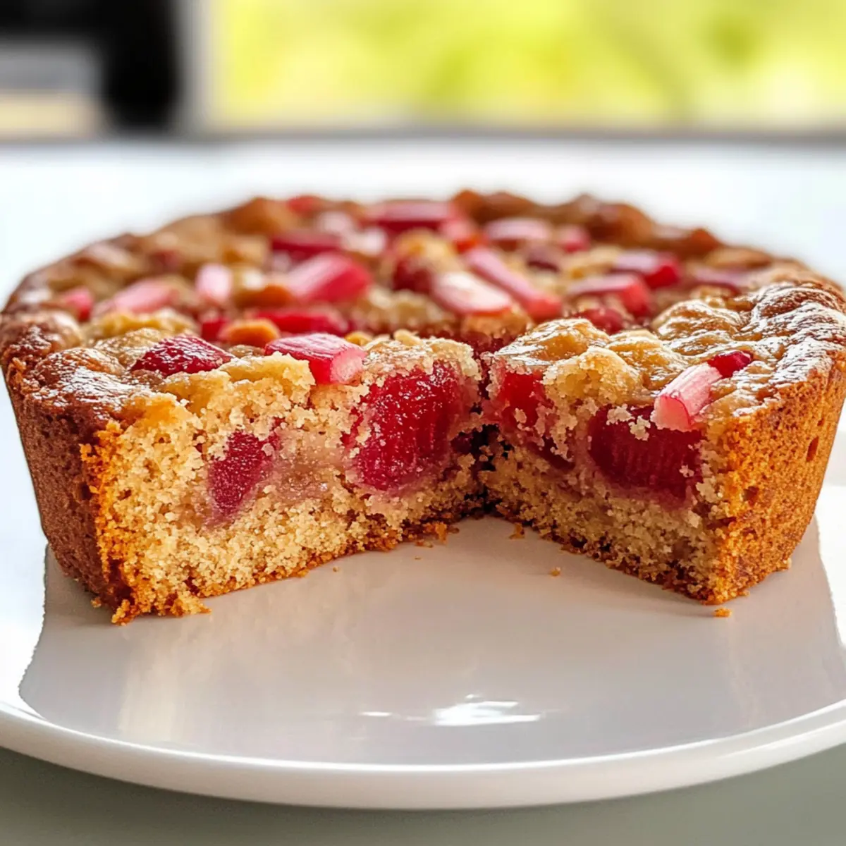 Saisonale Frische: Dieser Kuchen nutzt frischen Rhabarber, perfekt für Frühlingsfreuden und das Teilen mit Freunden.