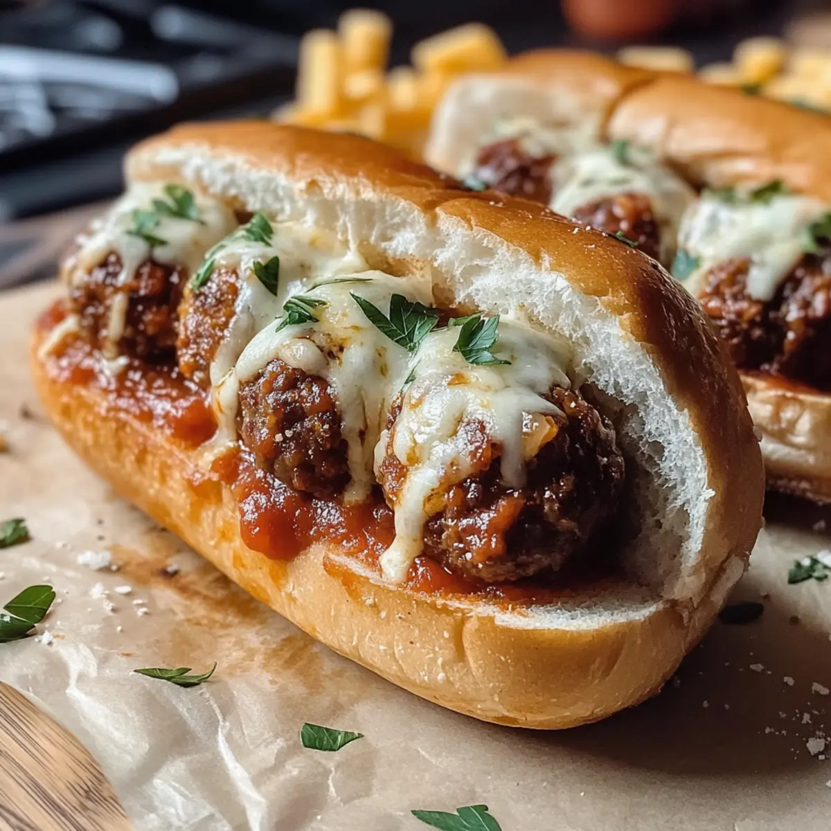 Einen warmen und einladenden Duft von frisch gebackenen Fleischbällchen umhüllt den Raum und lässt das Herz höher schlagen. Diese Fleischbällchen-Sandwiches sind nicht nur eine köstliche Reise durch die italienisch-amerikanische Küche, sondern auch das perfekte Rezept für ein schnelles Abendessen an hektischen Wochentagen. Mit ihrer kreativen Anpassungsfähigkeit sind sie ein echter Hingucker bei Familientreffen oder freundschaftlichen Zusammenkünften. Ob man die herzhafte traditionelle Variante oder eine vegetarische Kreation bevorzugt, jedes Sandwich wird durch die geschmolzene Mozzarella und die reichhaltige Marinara-Sauce zu einem Komfortessen, das Erinnerungen weckt. Bist du bereit, deinem nächsten Abendessen etwas Magie zu verleihen?