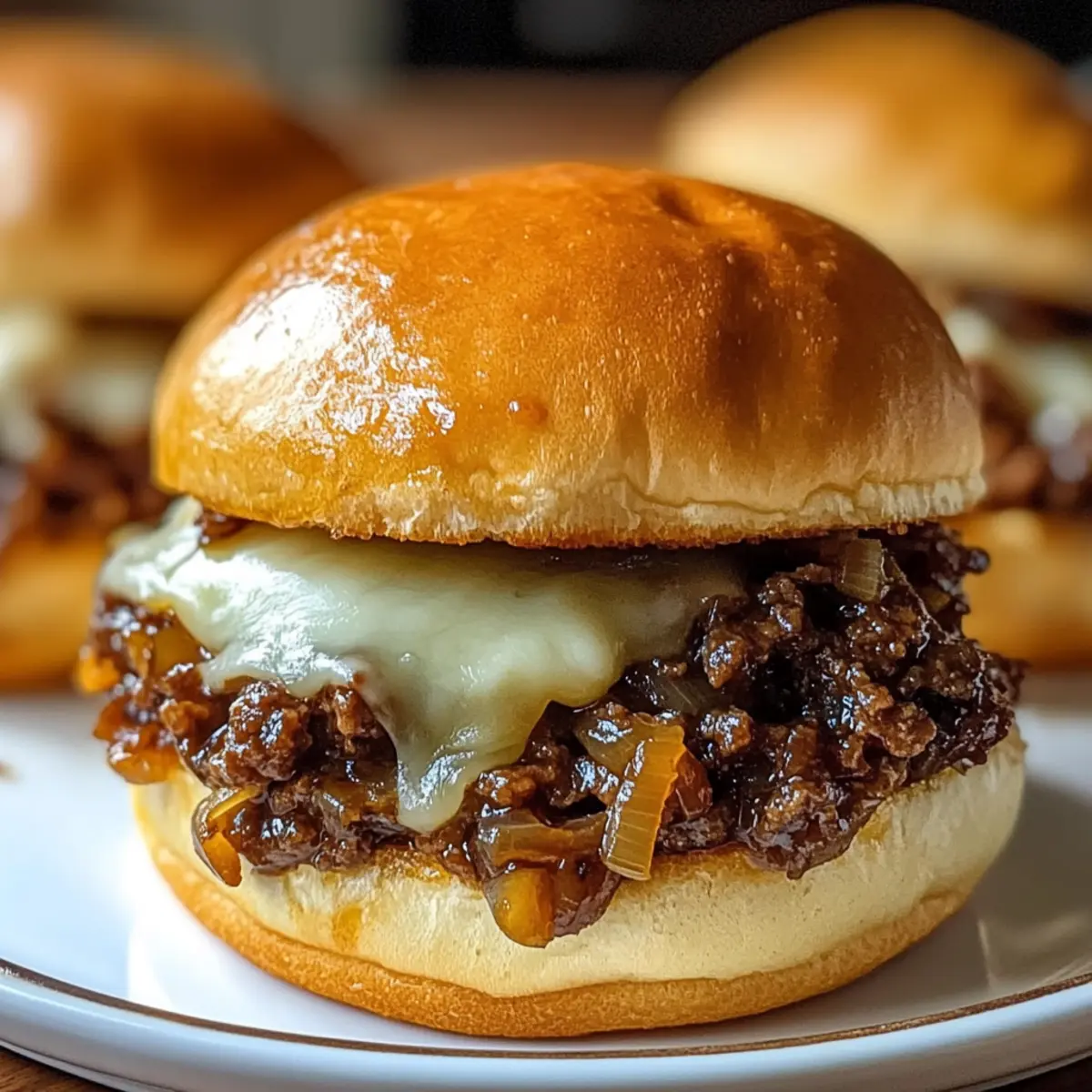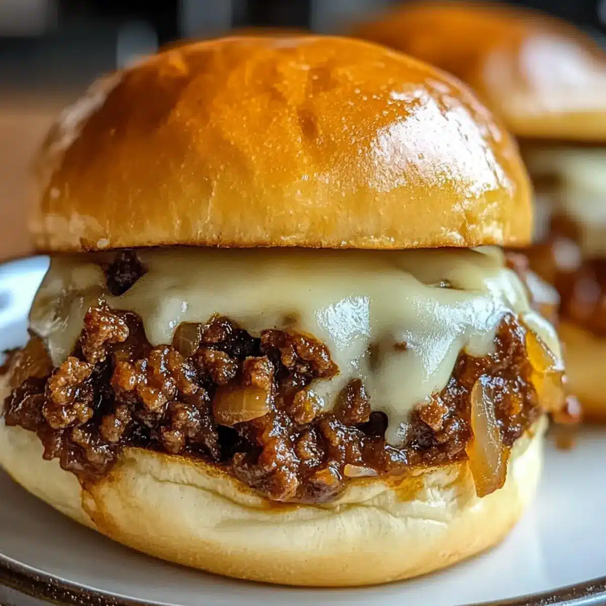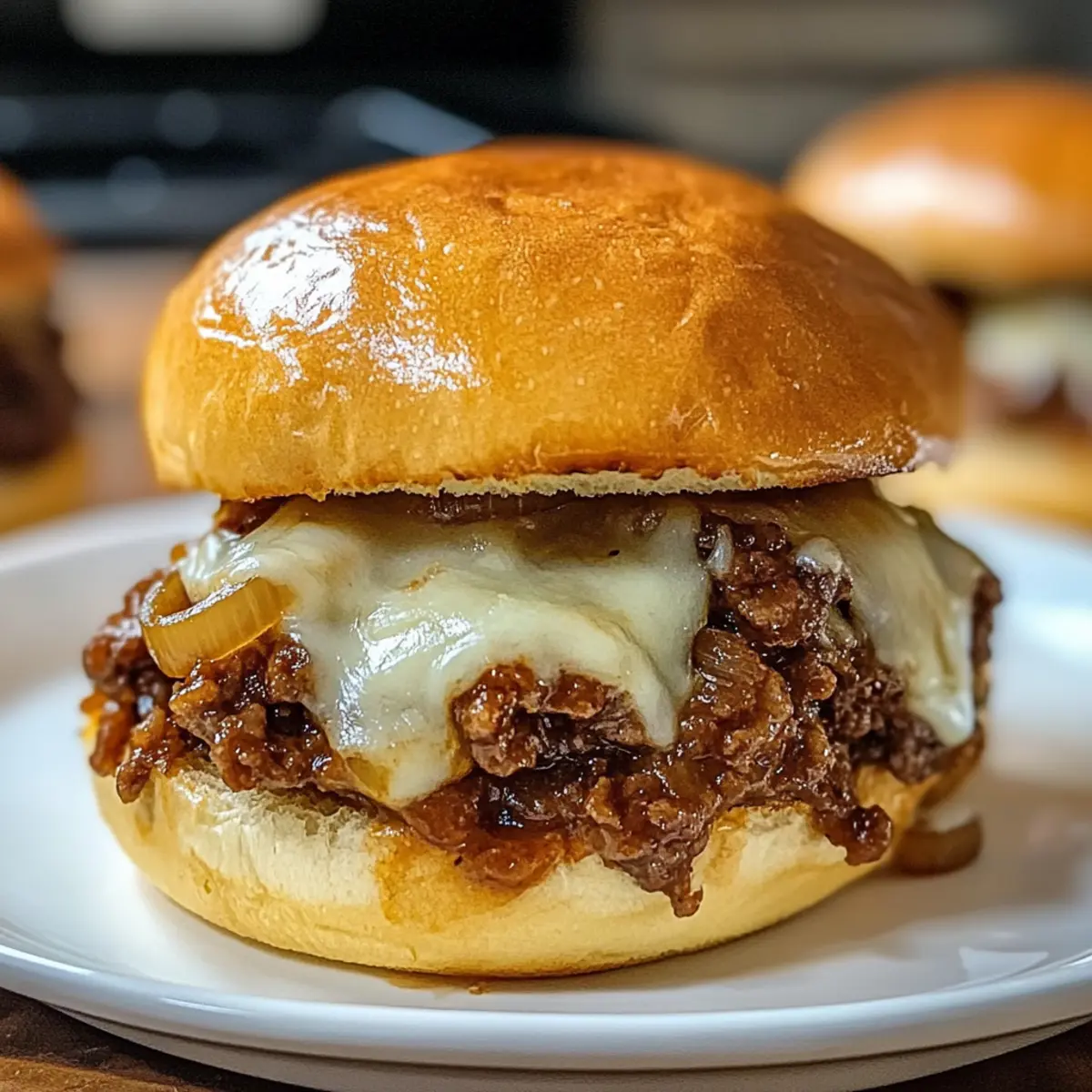 Französische Zwiebel-Rindfleisch-Sloppy Joes mit Käse