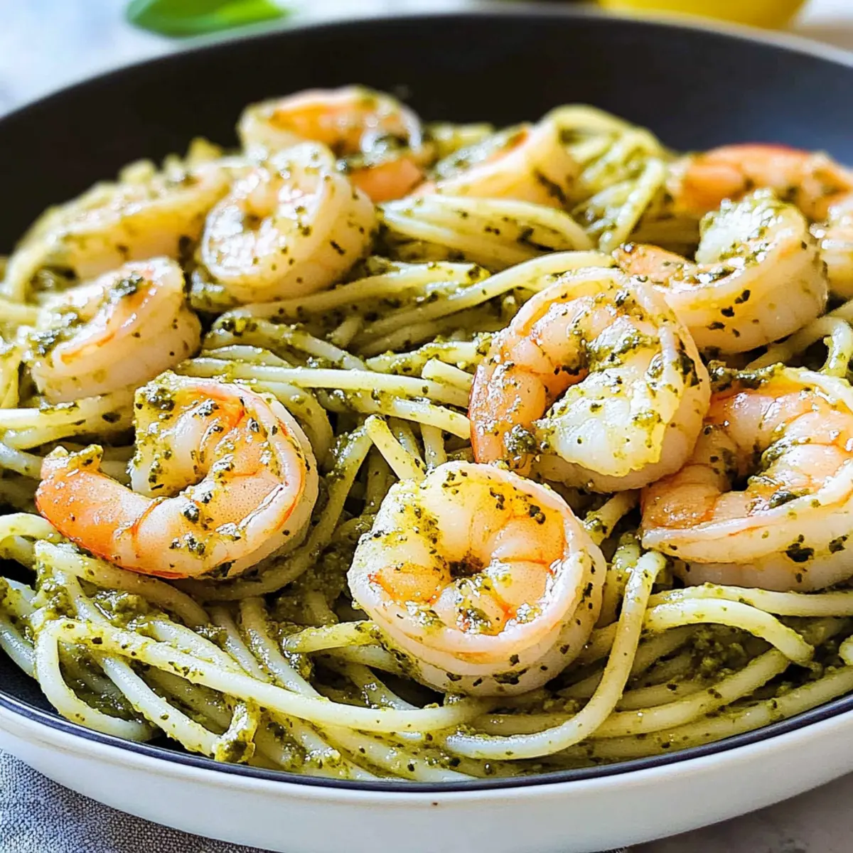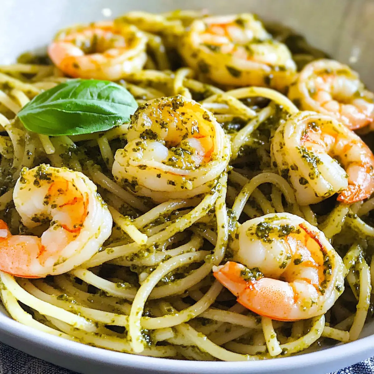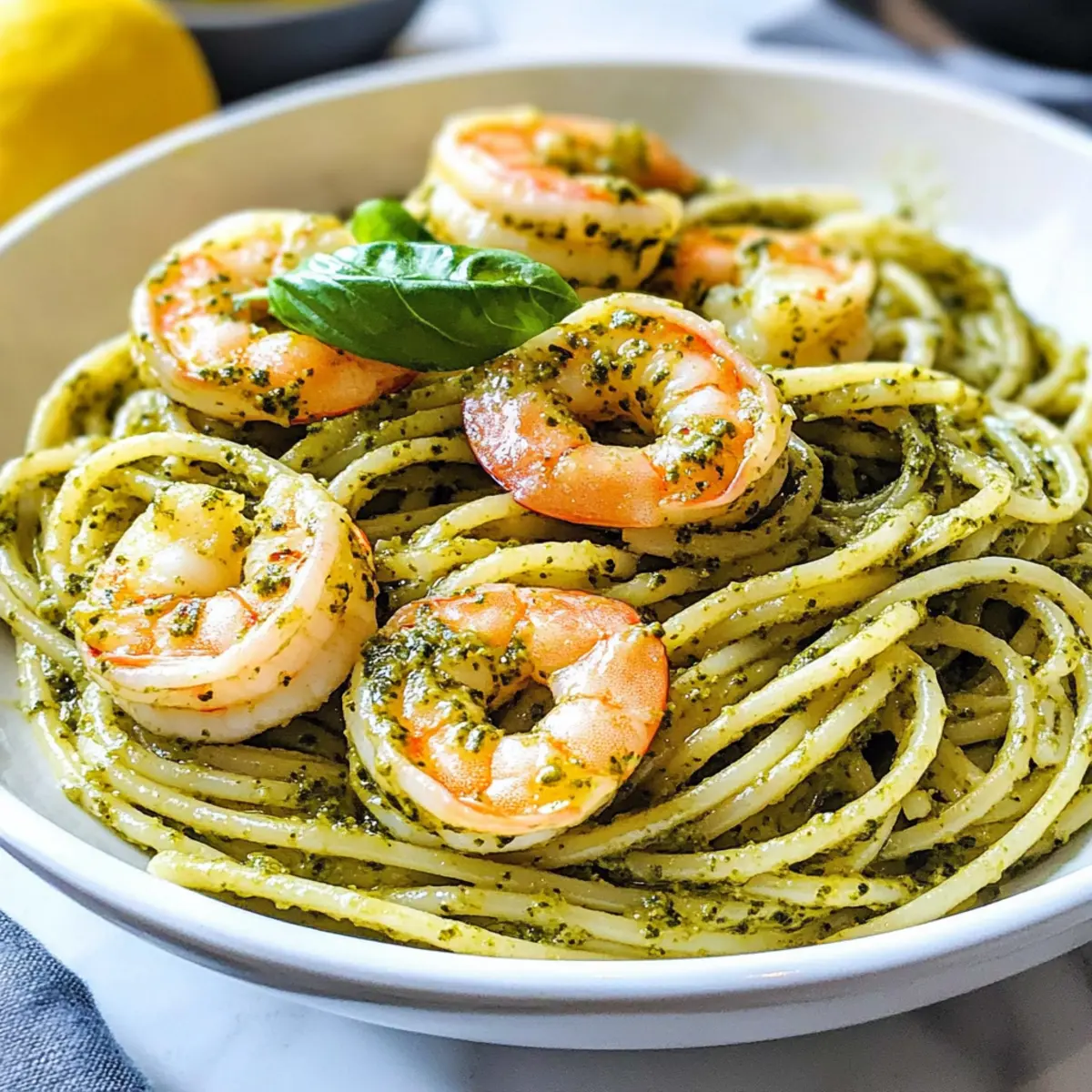 Perfekte Textur: Die Kombination aus cremigem Pesto, al dente Pasta und saftigen Garnelen bietet ein unvergleichliches Geschmackserlebnis.