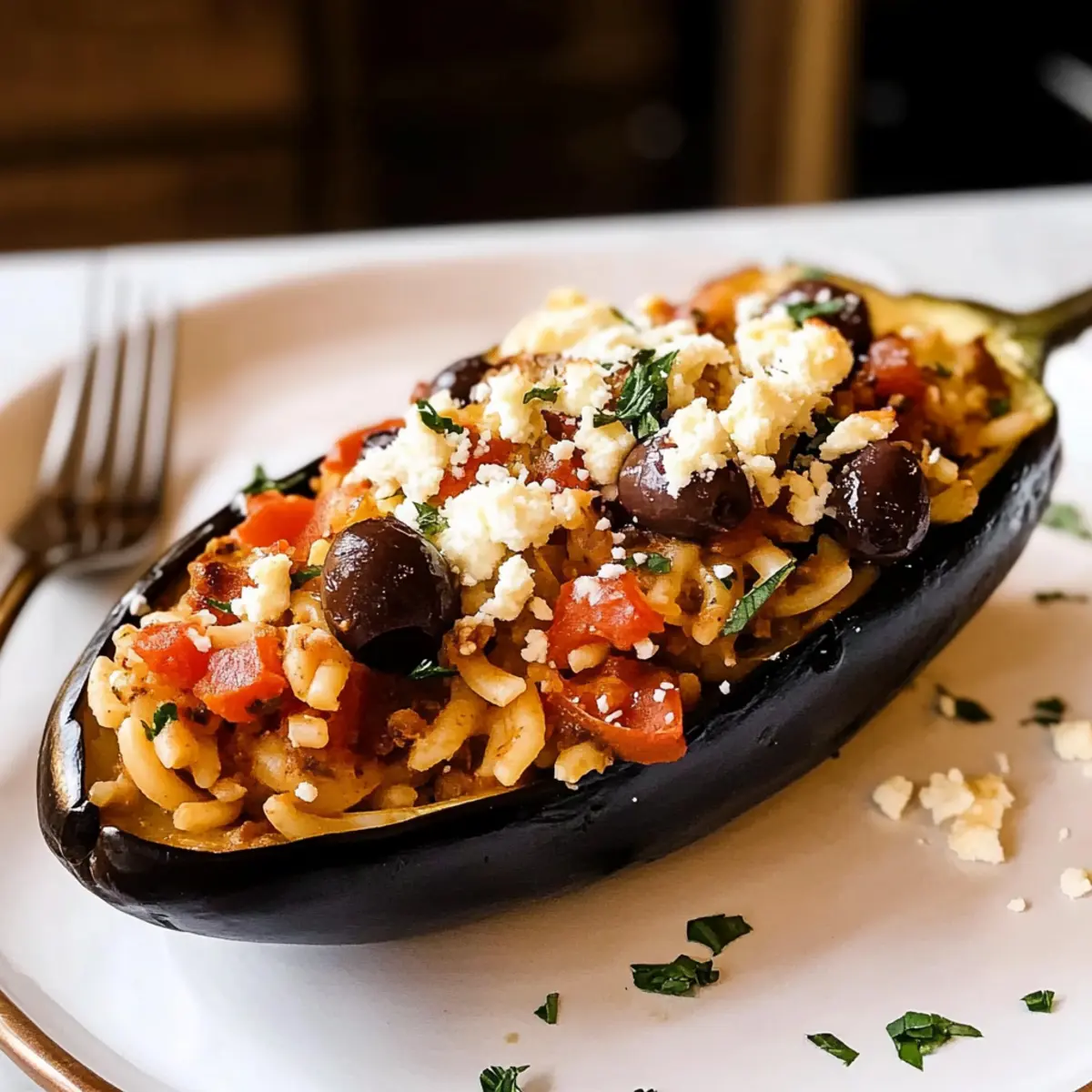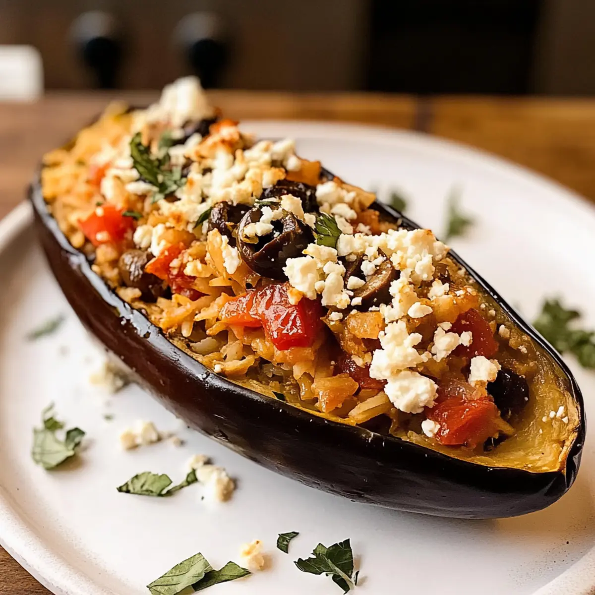 Gefüllte Aubergine vegetarisch mit Feta genießen