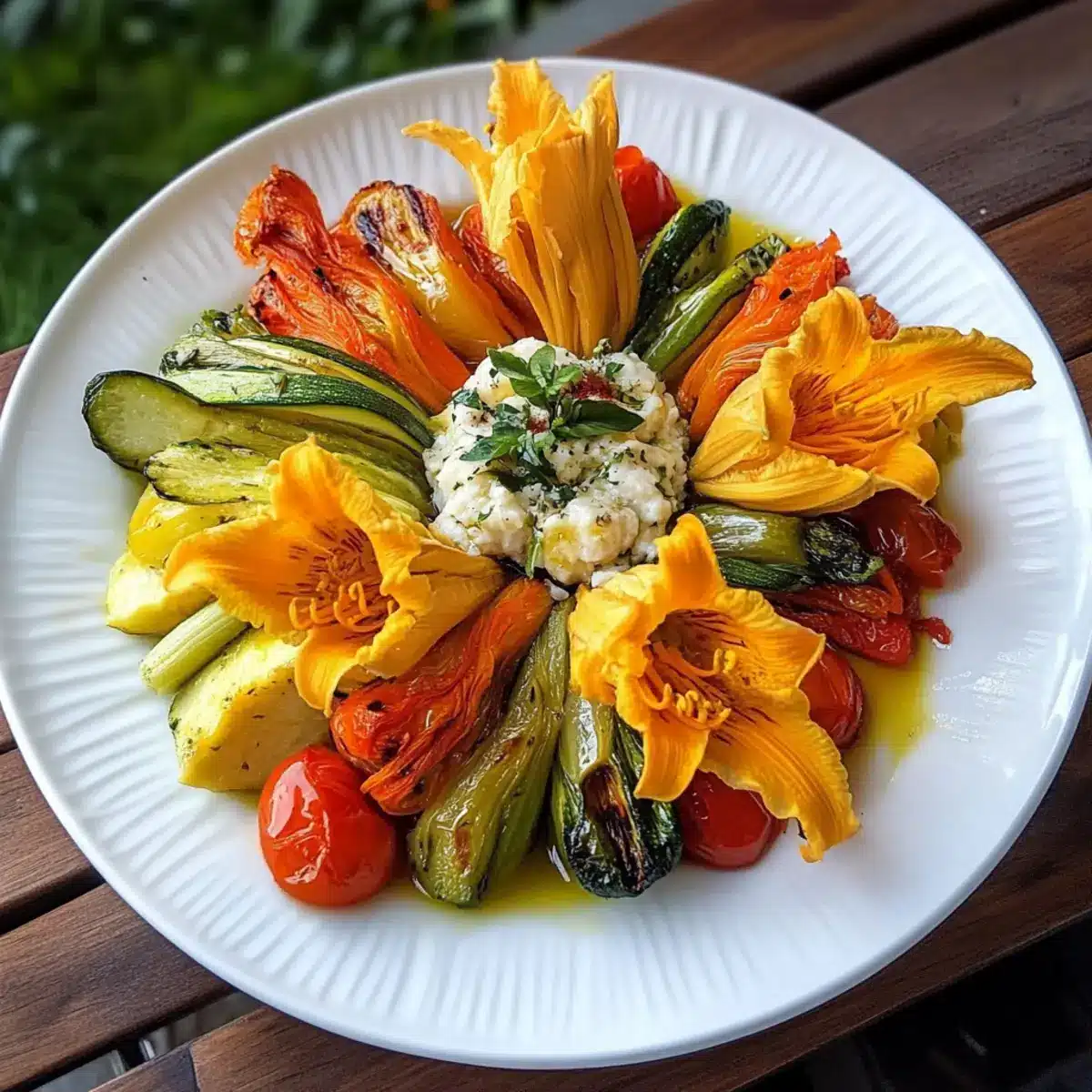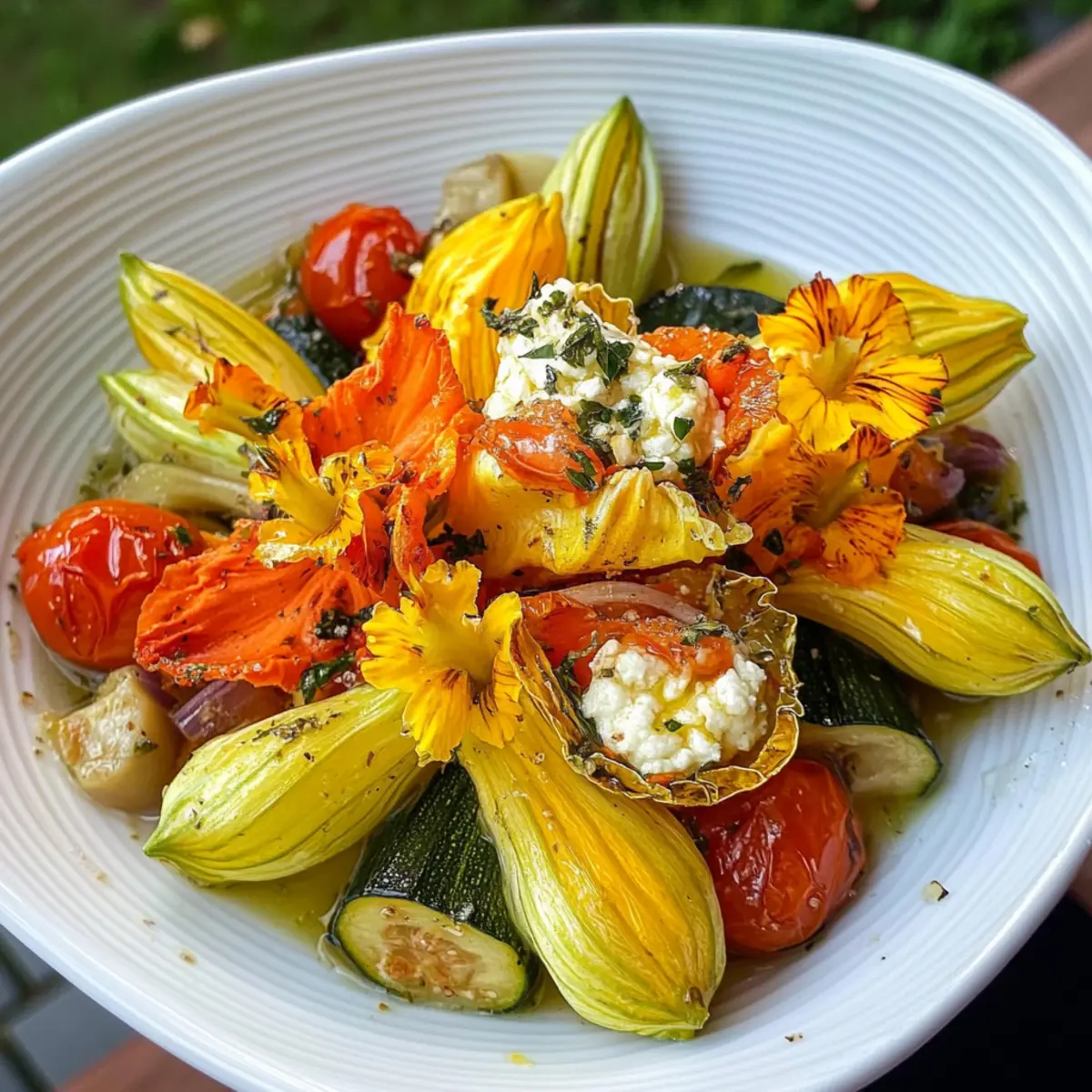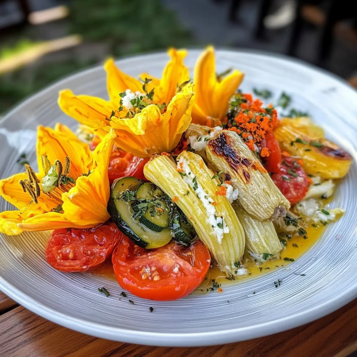 Gefüllte Taglilien mit geschmortem Sommergemüse