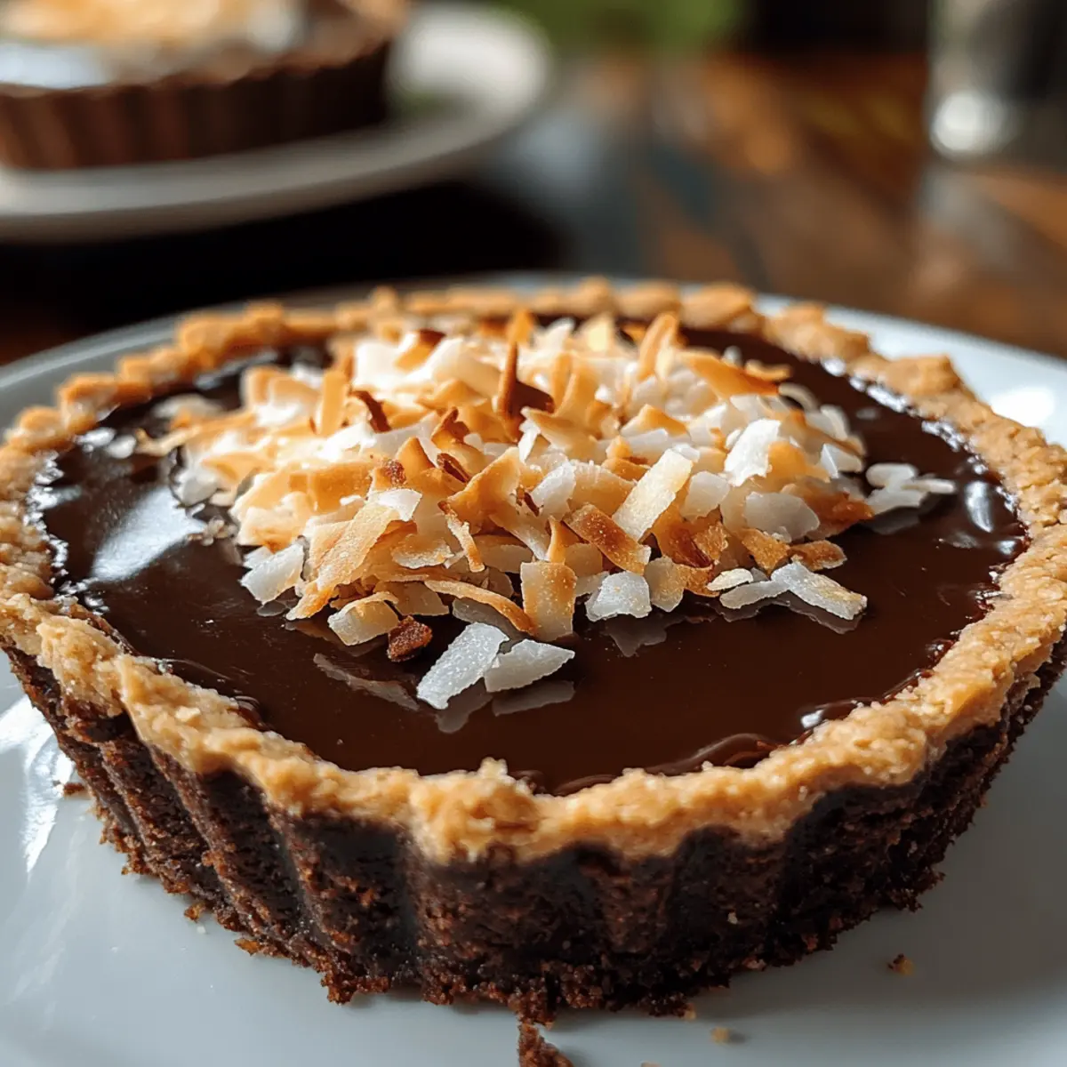 Wenn der Duft von frisch geröstetem Kokosnuss und schokoladiger Süße durch das Haus zieht, wird jeder in der Nähe neugierig. Ich kann nicht anders, als mich auf eine köstliche Reise einzulassen, die mit meiner Gerösteten Kokos-Schokoladen-Tarte beginnt. Diese Tarte vereint zartschmelzende Schokoladenfüllung mit einem buttrigen, kakaohaltigen Boden und einem knusprigen Topping aus goldbraunem Kokos. Perfekt für ein schnelles Dessert nach einem langen Tag oder um Gäste zu beeindrucken – sie ist in nur 30 Minuten zubereitet und ist so einfach herzustellen! Wenn du einmal in den Genuss dieser wunderbaren Aromen kommst, wirst du nicht mehr aufhören können zu träumen – wie wird deine Tarte aussehen, wenn sie servierbereit ist?