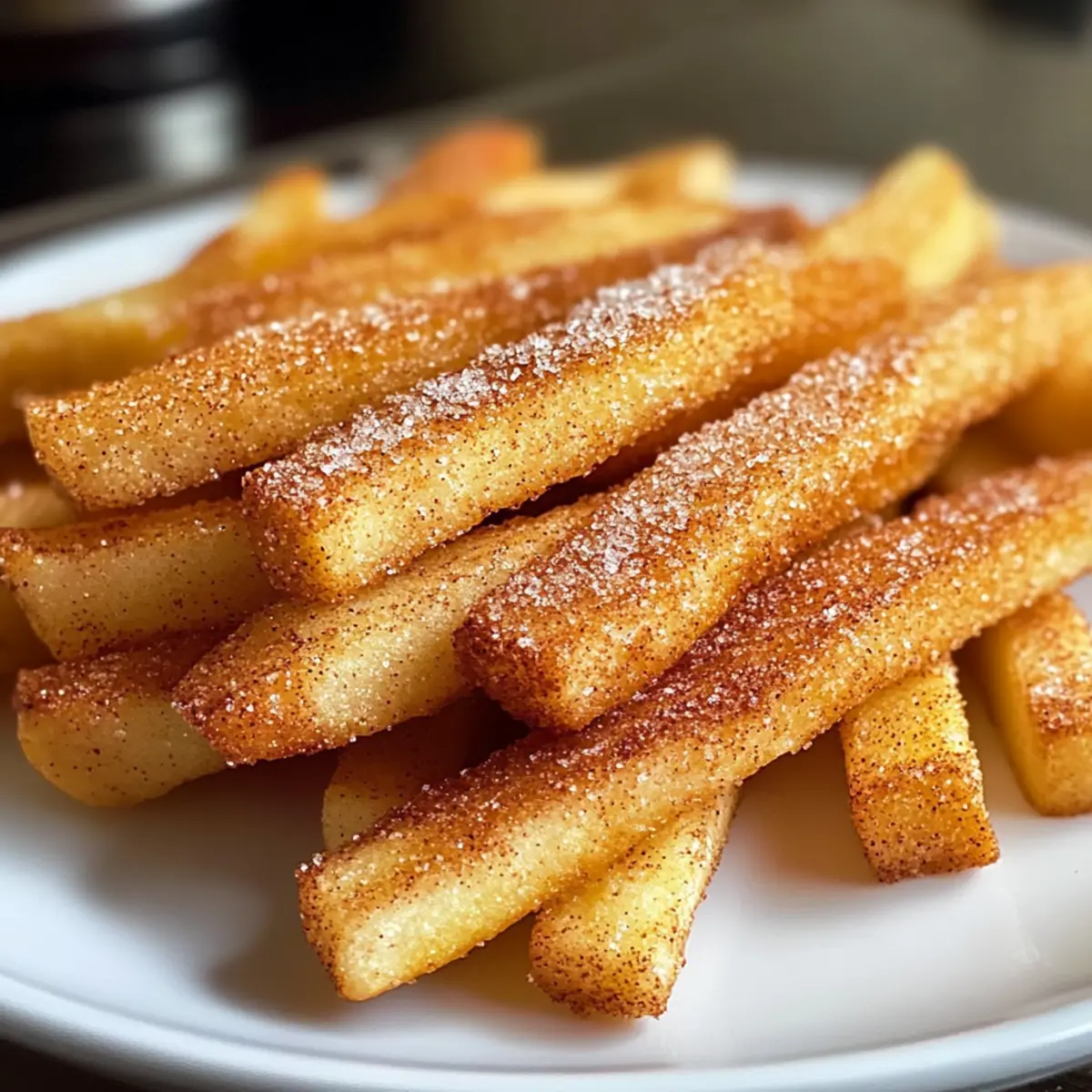 - Servieren: Apfelpommes goldbraun und knusprig servieren und optional mit Puderzucker bestäuben.