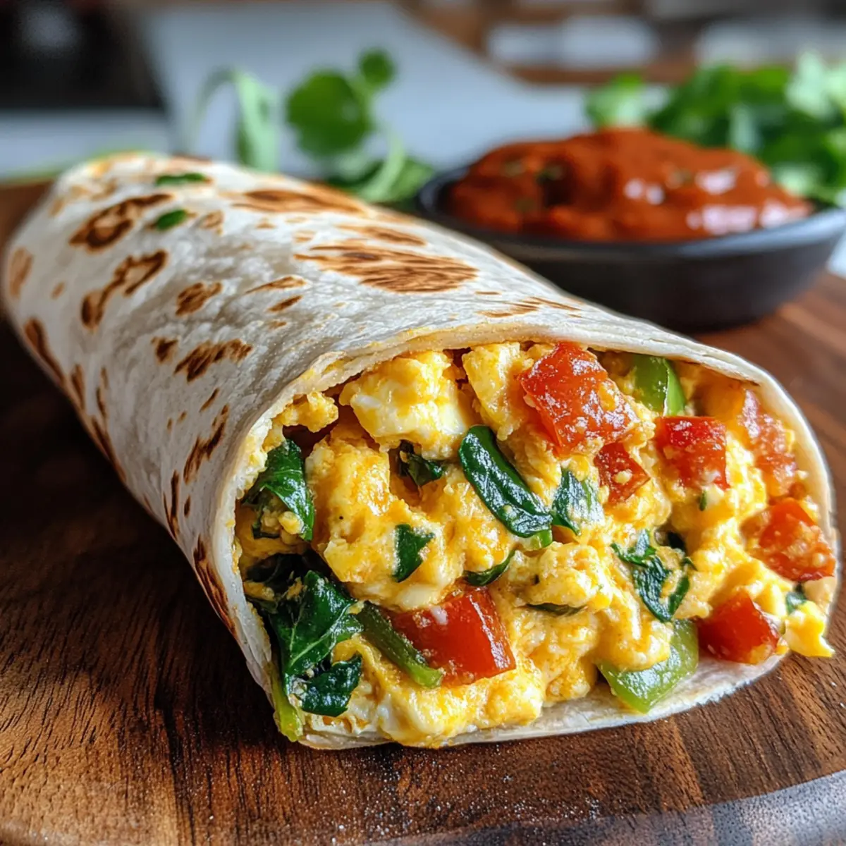 Eier nicht übergaren: Rühre die Eier sanft, bis sie schön fluffig und noch leicht feucht sind. So bleibt die Textur optimal und dein Frühstücksburrito wird besonders schmackhaft.