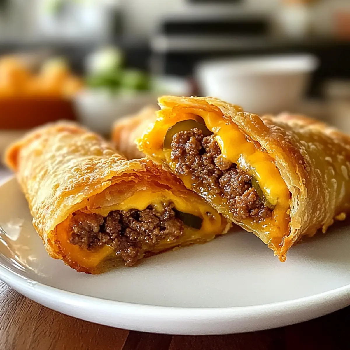Verpasse nicht die Gelegenheit, diese köstlichen Käseburger-Eirollen selbst auszuprobieren!
