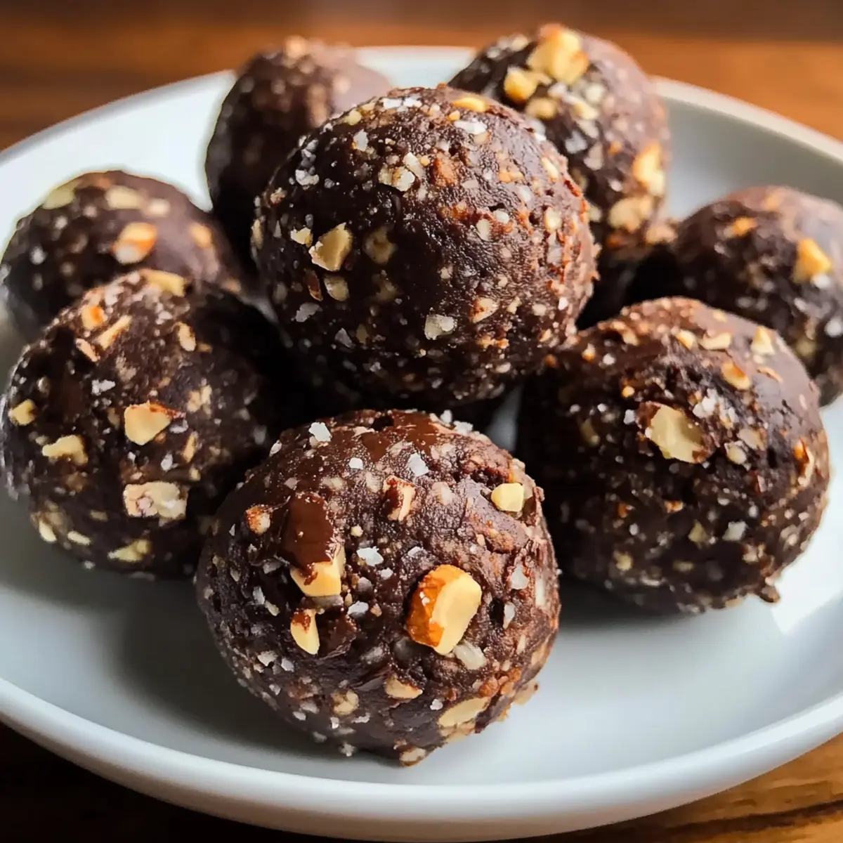- Nach dem Kühlen sind deine Keine backen Schokoladenproteinbällchen bereit zum Servieren.