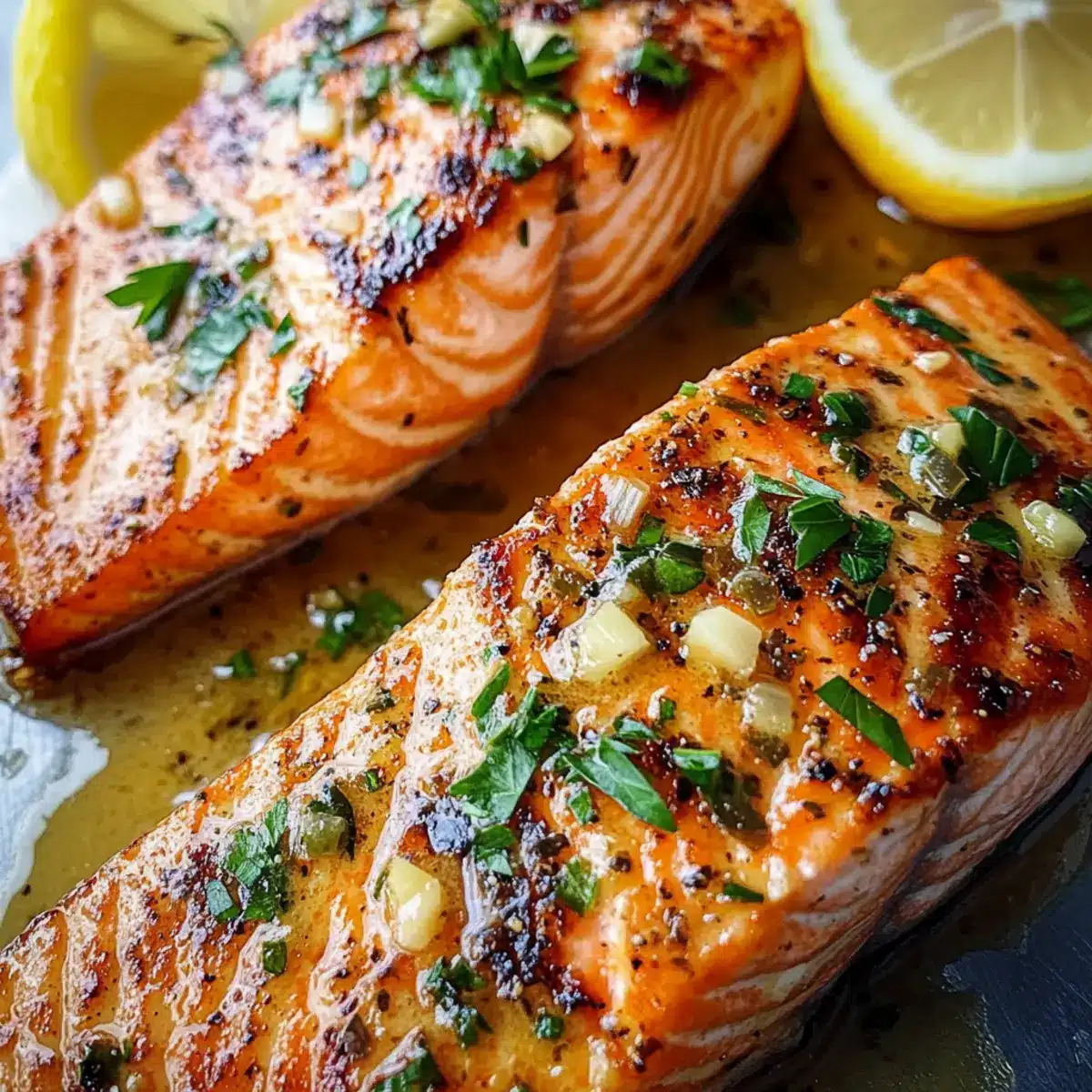 Die Zubereitung dieses Knoblauchbutterlachs Rezepts ist ideal für vielbeschäftigte Köche, die Zeit sparen möchten! Du kannst die Lachsfilets bereits bis zu 24 Stunden im Voraus vorbereiten, indem du sie würzt und in einer luftdichten Verpackung im Kühlschrank lagerst, um Frische und Geschmack zu erhalten. Die Knoblauchbuttersauce kann ebenfalls bis zu 3 Tage vorher zubereitet und im Kühlschrank aufbewahrt werden; erwärme sie einfach in der Pfanne, bevor du sie über den Lachs gibst. Wenn du bereit bist zu servieren, erhitze einfach etwas Olivenöl in einer Pfanne, brate den marinierten Lachs nach Anleitung und kombiniere ihn mit der vorbereiteten Sauce – so hast du ein köstliches Gericht mit minimalem Aufwand, ganz gleich wie hektisch dein Tag auch sein mag!