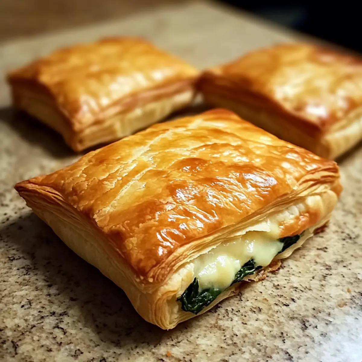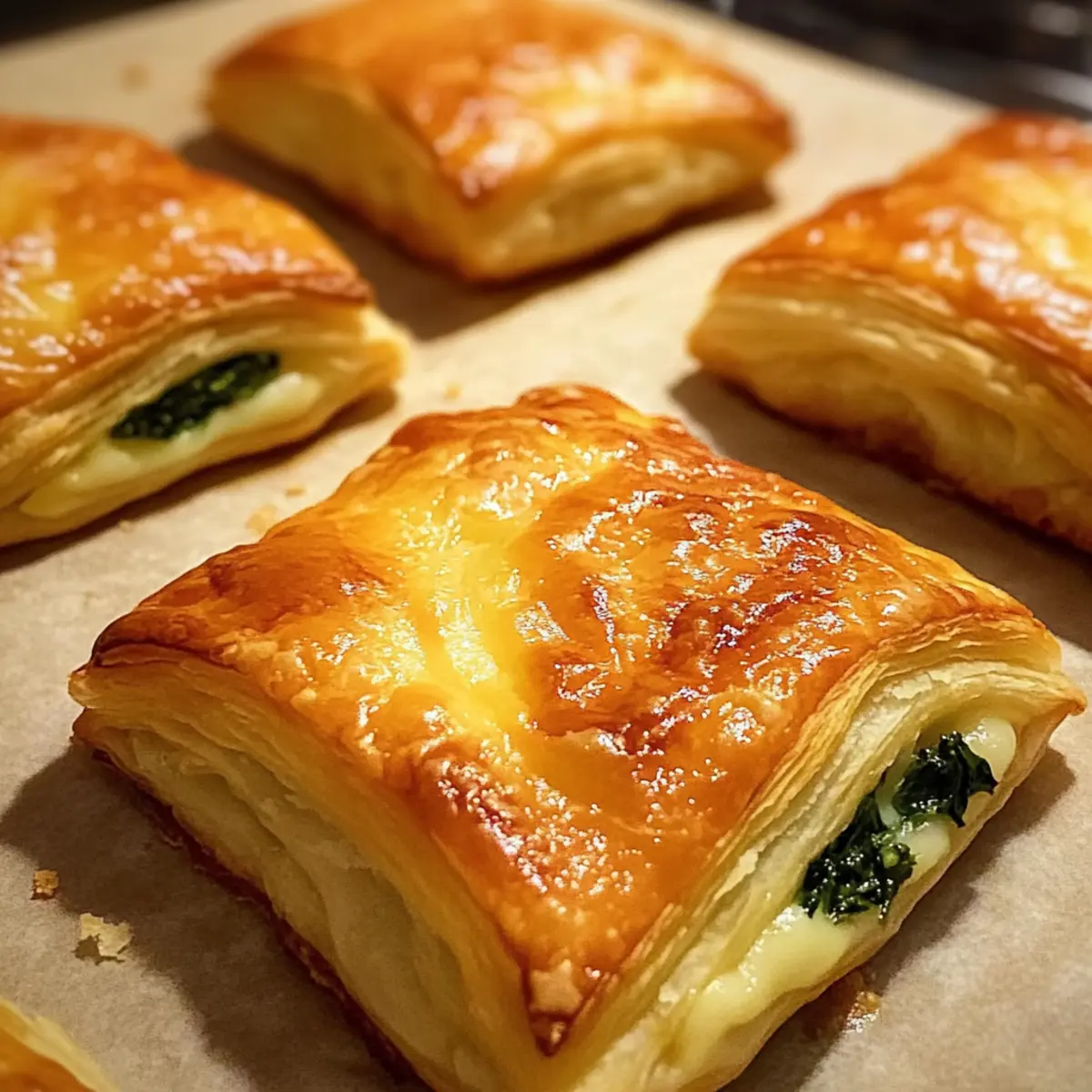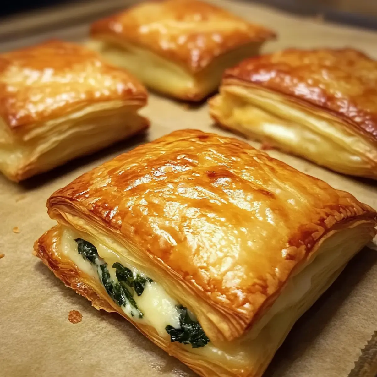 Diese knusprigen Blätterteig Snacks sind ideal für die Vorbereitung, um dir an stressigen Tagen Zeit zu sparen! Du kannst die Füllung (Käse und Spinat) bis zu 24 Stunden im Voraus zubereiten und im Kühlschrank aufbewahren, damit die Aromen durchziehen. Der Blätterteig kann ebenfalls bereits vorbereitete Quadrate lagern; damit er nicht austrocknet, am besten gut in Frischhaltefolie einwickeln. Wenn du bereit bist zu servieren, forme einfach die Snacks, bestreue sie mit Eierwash und backe sie für 15-20 Minuten bei 180°C, bis sie goldbraun sind. Diese Vorbereitungen garantieren, dass du frisch gebackene Snacks mit minimalem Aufwand genießen kannst – einfach lecker!