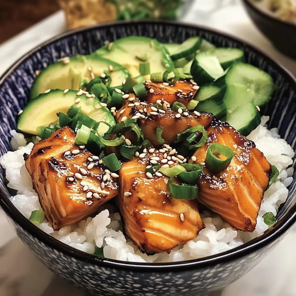 Einfache Zubereitung: Dank einer klaren Schritt-für-Schritt-Anleitung gelingt dir die knusprige Lachs- und Reisschüssel mühelos in unter 30 Minuten. Vielfalt der Toppings: Du kannst das Rezept ganz nach deinem Geschmack anpassen – von Avocado bis Nori, der Auswahl sind kaum Grenzen gesetzt. Gesund und nährstoffreich: Diese Schüssel ist eine wahre Omega-3-Quelle und sorgt für eine gesunde Ernährung. Augenschmaus: Die Kombination aus knusprigem Lachs und bunten Toppings sieht nicht nur toll aus, sondern schmeckt auch hervorragend. Perfekt für Meal Prep: Bereite die Zutaten im Voraus zu, um dir an hektischen Tagen eine köstliche Mahlzeit zu gönnen. Probiere auch unsere Tipps für weitere Variationen und entdecke die Vielseitigkeit dieses Gerichts!