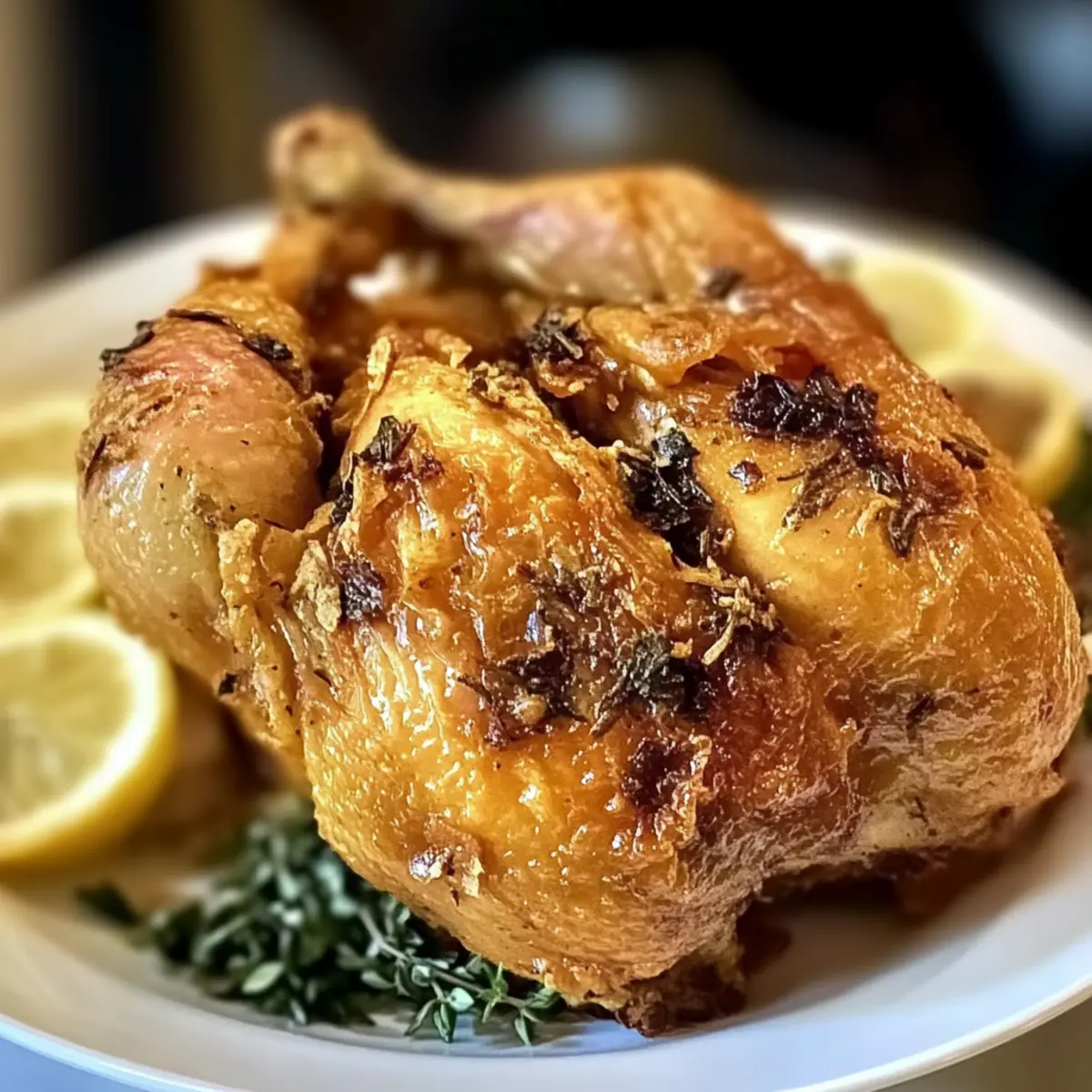 - Kräuterauffrischung: Gebt frische Kräuter wie Rosmarin oder Thymian in die Füllung des Hähnchens, um die Aromen zu intensivieren. So wird es noch saftiger!
