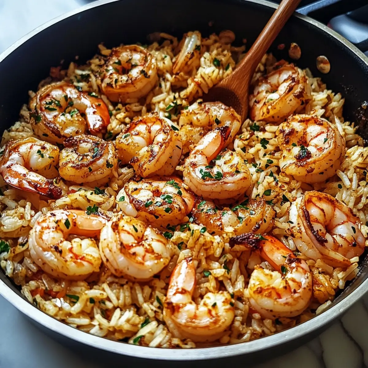 Kräuter-Garnelen und Reis-Pfanne Rezept für Eilige