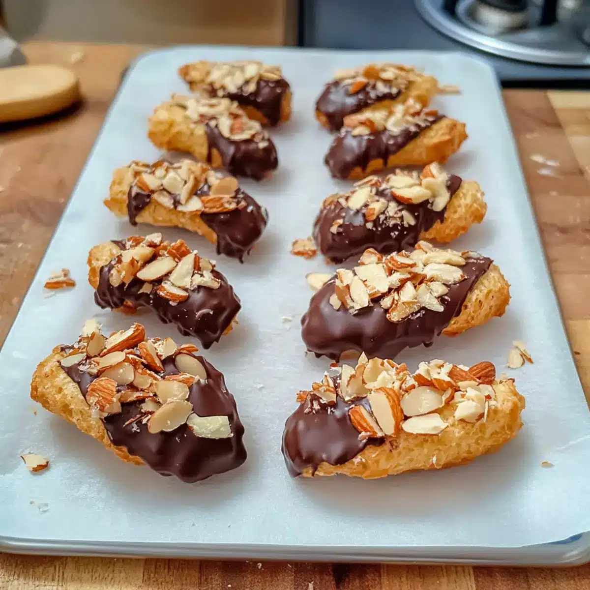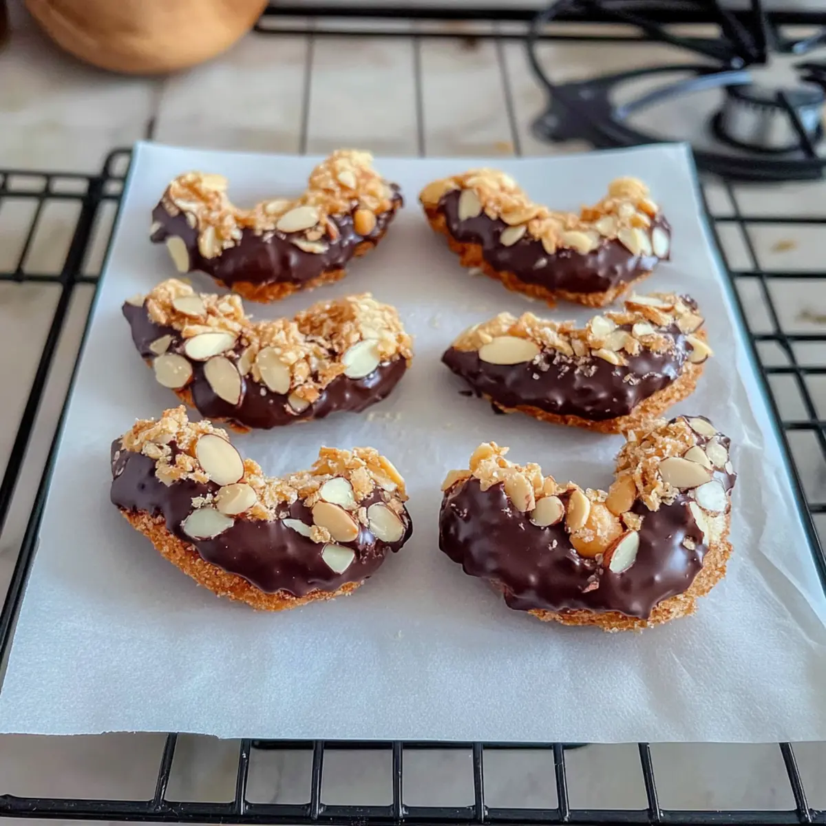 - Schokolade vollständig aushärten: Lass die Kuvertüre vollständig aushärten, bevor du die Mandelhörnchen bewegst, um unschöne Schokoladenflecken zu vermeiden.