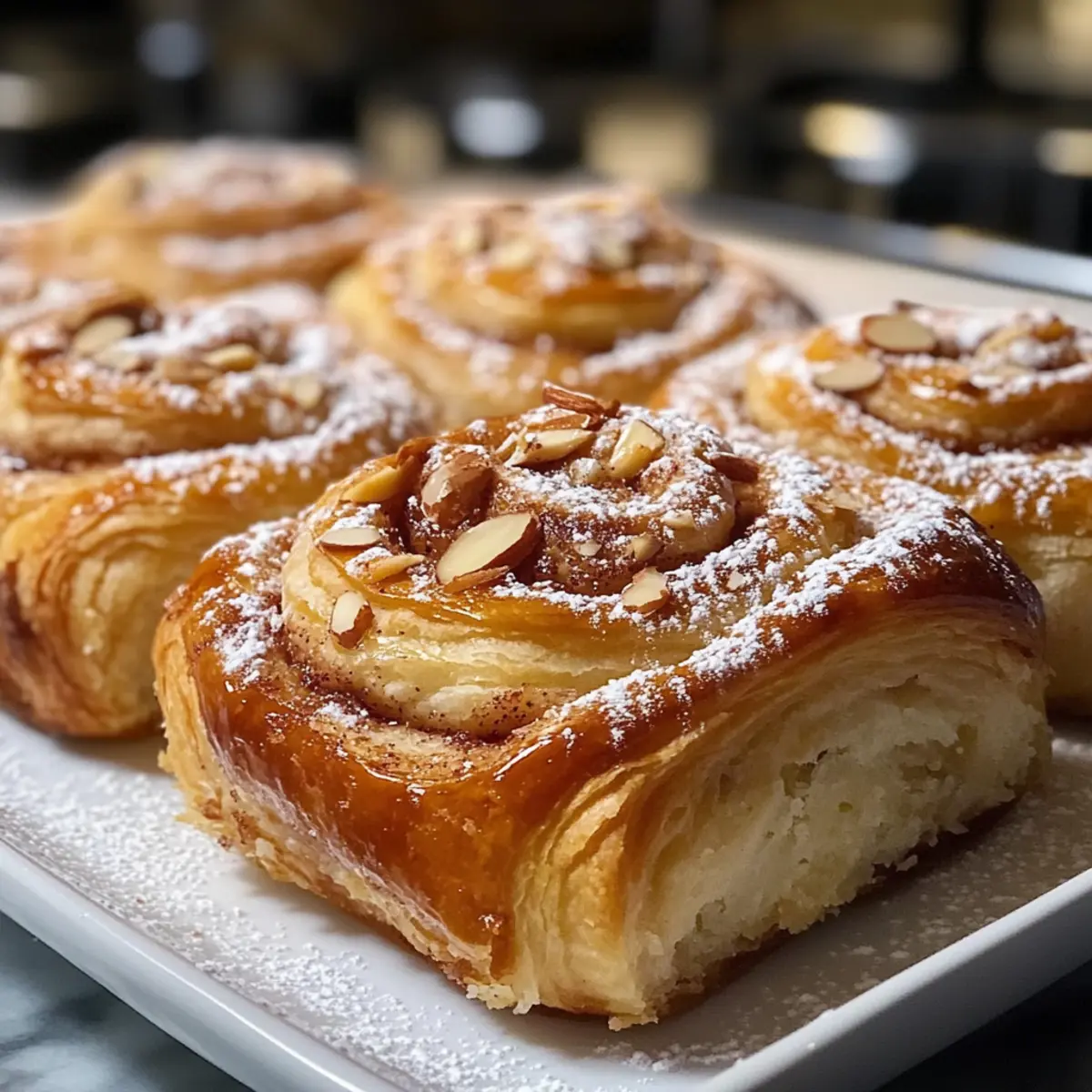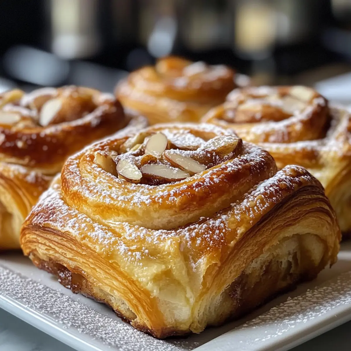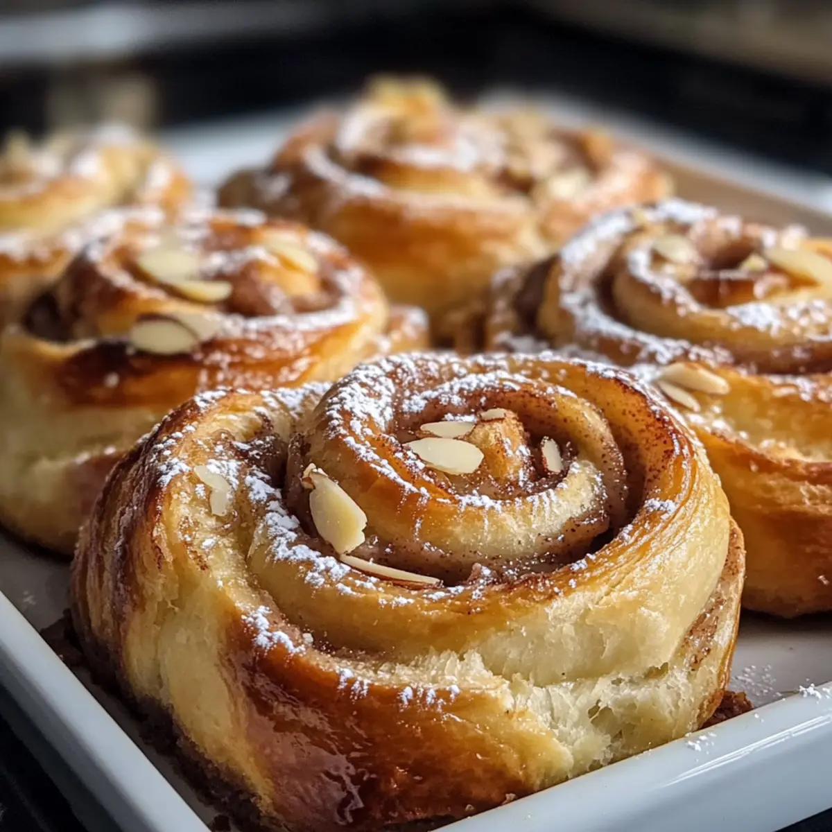 Einzigartig: Diese Mandelhörnchen Zimtschnecken kombinieren das Beste aus zwei Welten – die zarte Fluffigkeit von Croissant-Teig und die Süße einer klassischen Zimtschnecke.