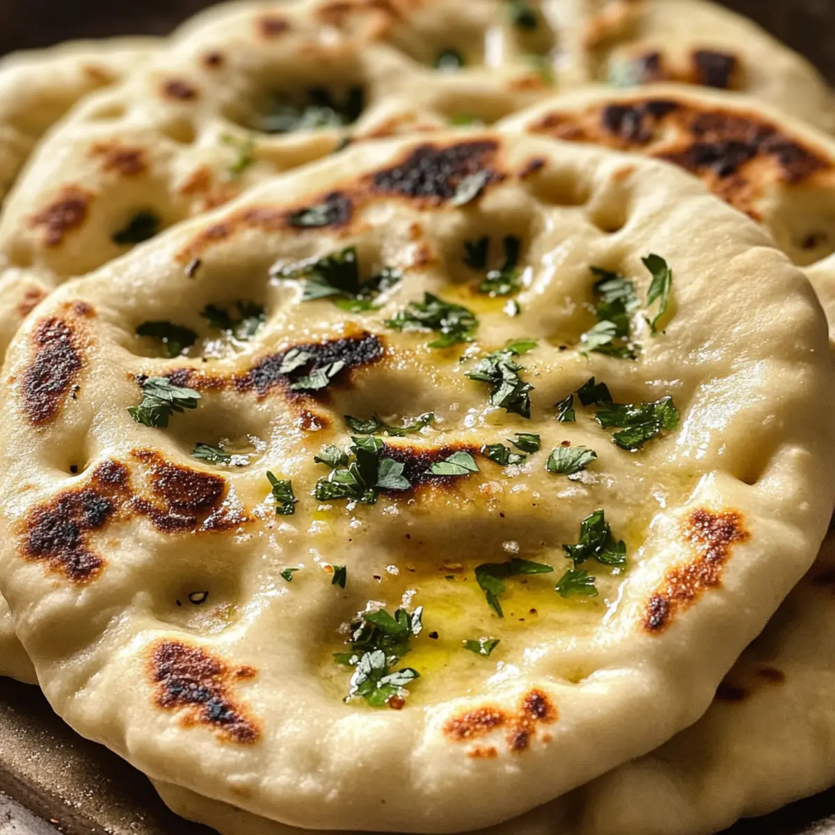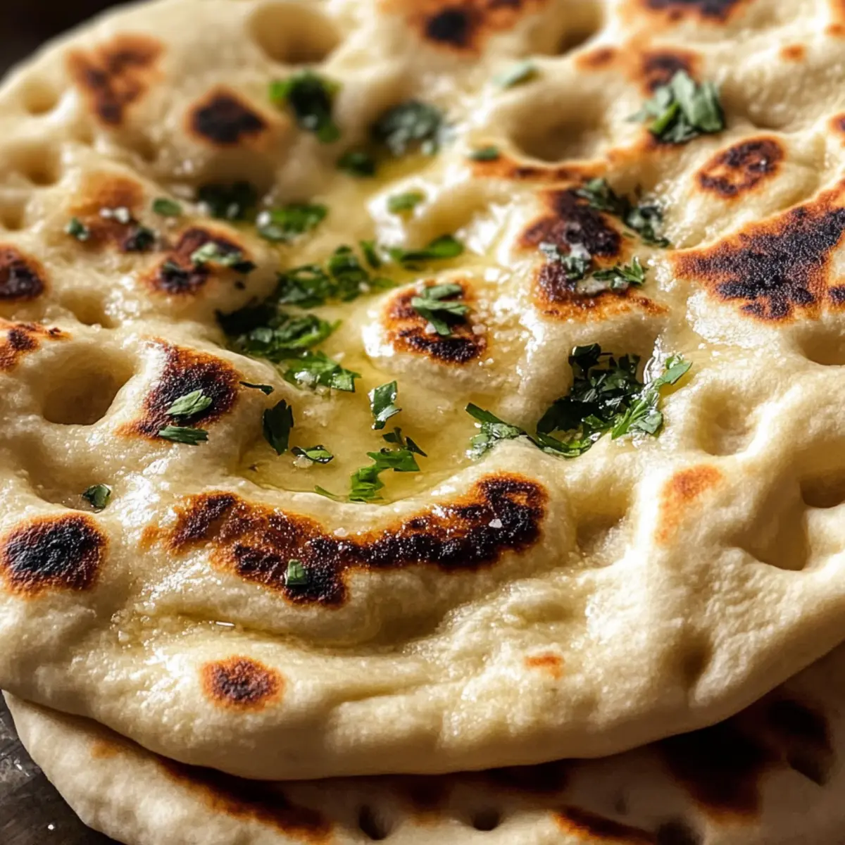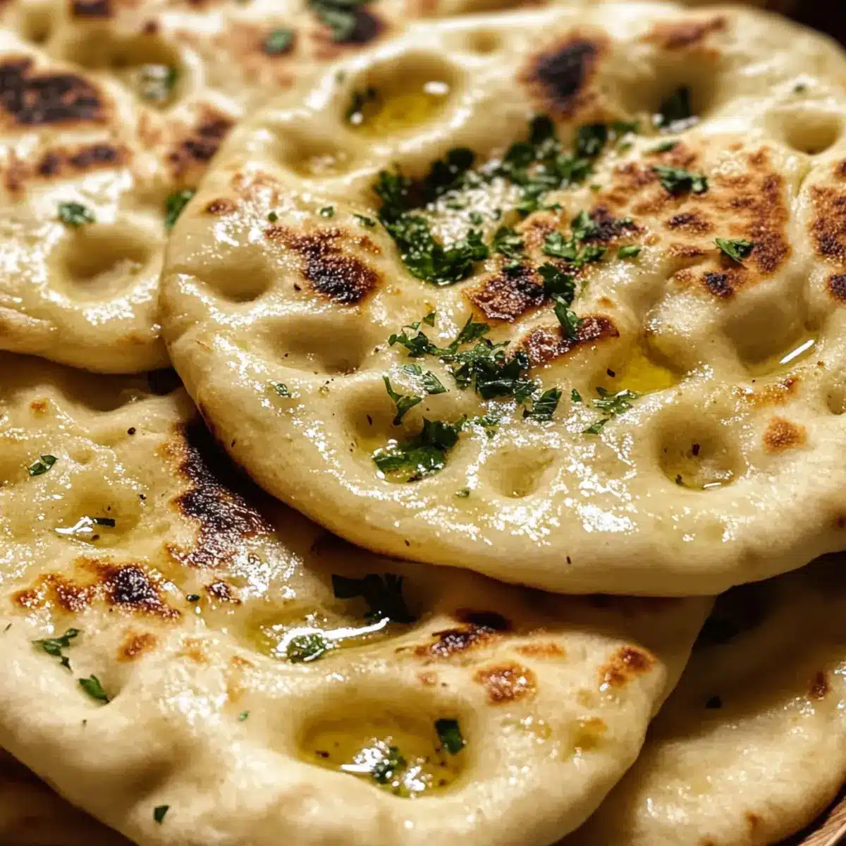 Kräuter Naan: Vermische gehackte frische Kräuter wie Koriander oder Dill in den Teig, um dem Naan eine aromatische Note zu verleihen.