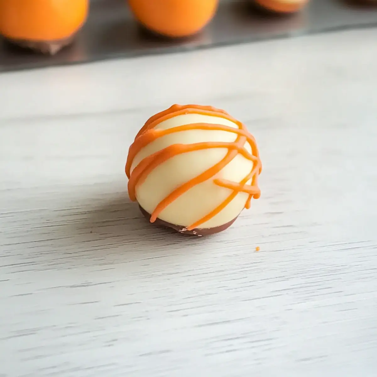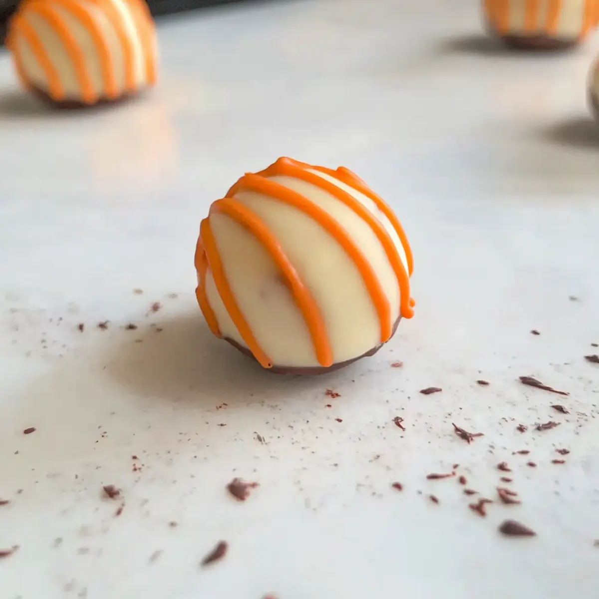 Kreative Dekoration: Mit orangefarbener Lebensmittelfarbe verleihen Sie den Pralinen eine verspielte Note, die sie zum perfekten Blickfang bei jeder Feier macht. Kombinieren Sie sie mit einem Waffelkekse Mit Zimt für ein süßes Erlebnis!