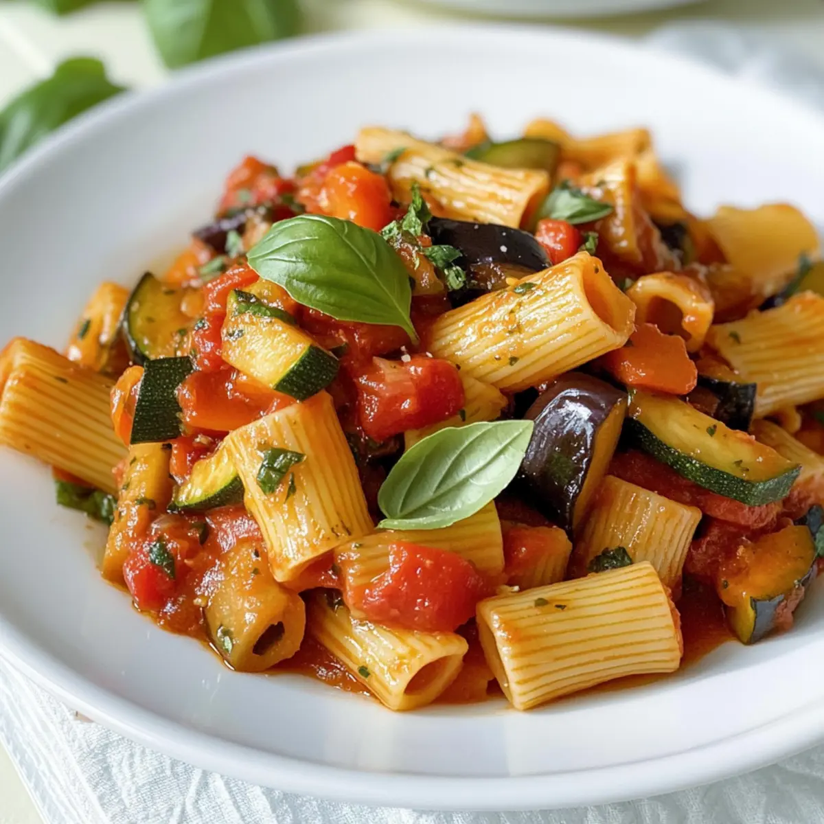 Frische Aromen: Diese Ratatouille-Pasta bringt den Geschmack des Sommers direkt auf deinen Teller mit einer bunten Kombination aus saisonalem Gemüse.