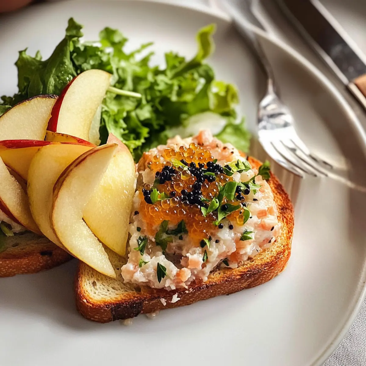 Räucherfischtatar auf Toast und Apfel genießen
