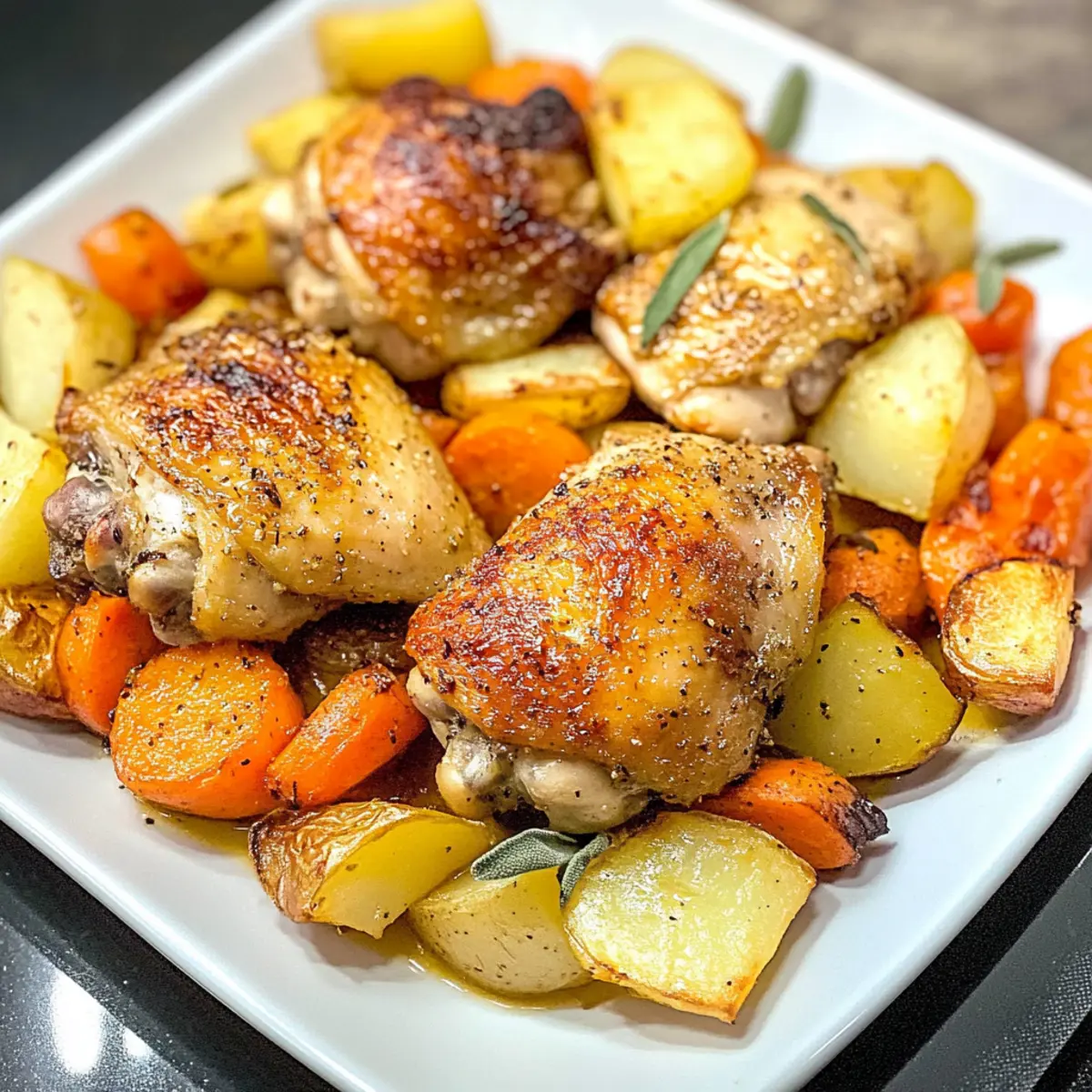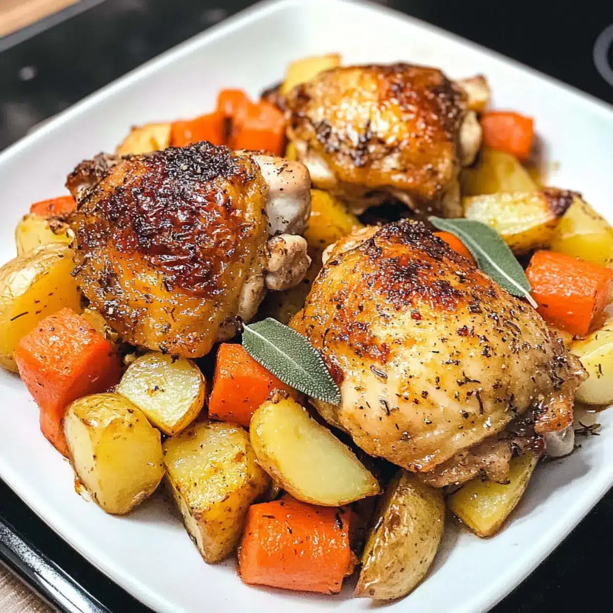 Rösthähnchenschenkel und Kartoffeln aus nur einer Pfanne