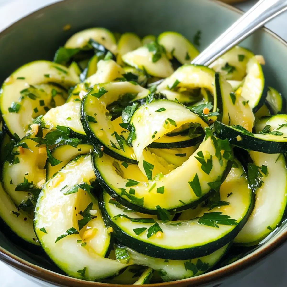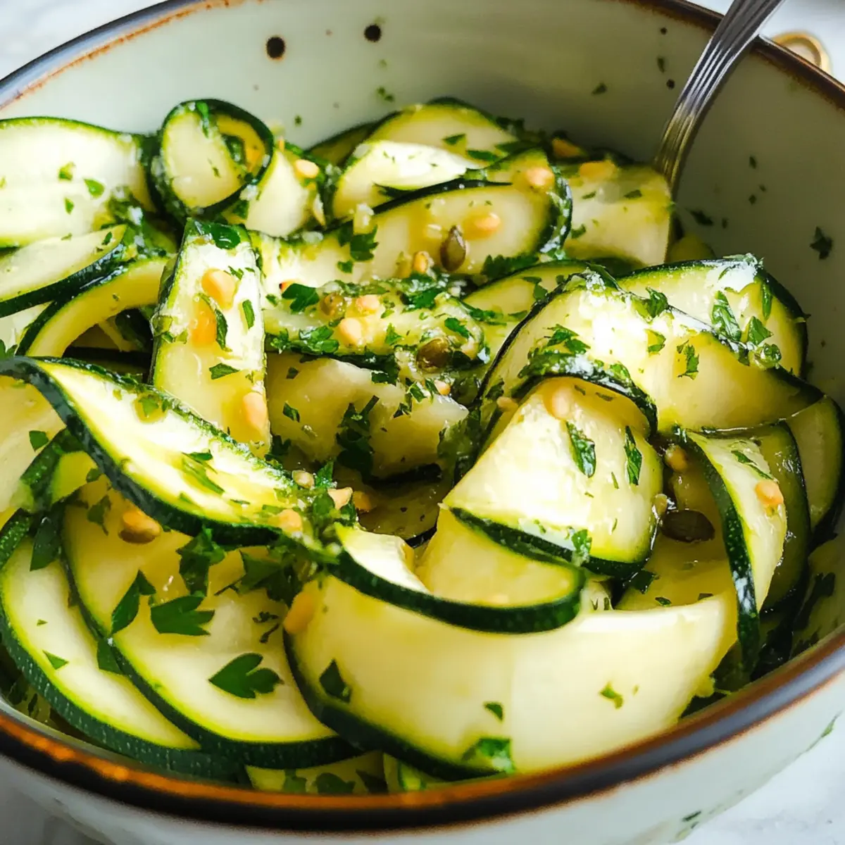 Genießen Sie Ihren rohen Zucchinisalat als perfekte Beilage oder schnelles Mittagessen!