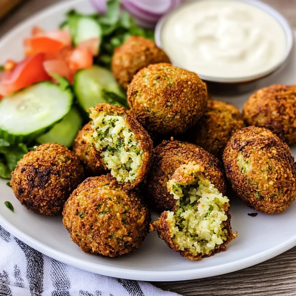 Serviere die knusprigen Saftigen Orientalischen Falafel warm, garniert mit frischen Gurken, Tomaten und einer Auswahl an Dips wie Tahini oder Hummus. Sie sind perfekt für Wraps oder als Snack und bringen ein Stück orientalisches Flair auf deinen Tisch.