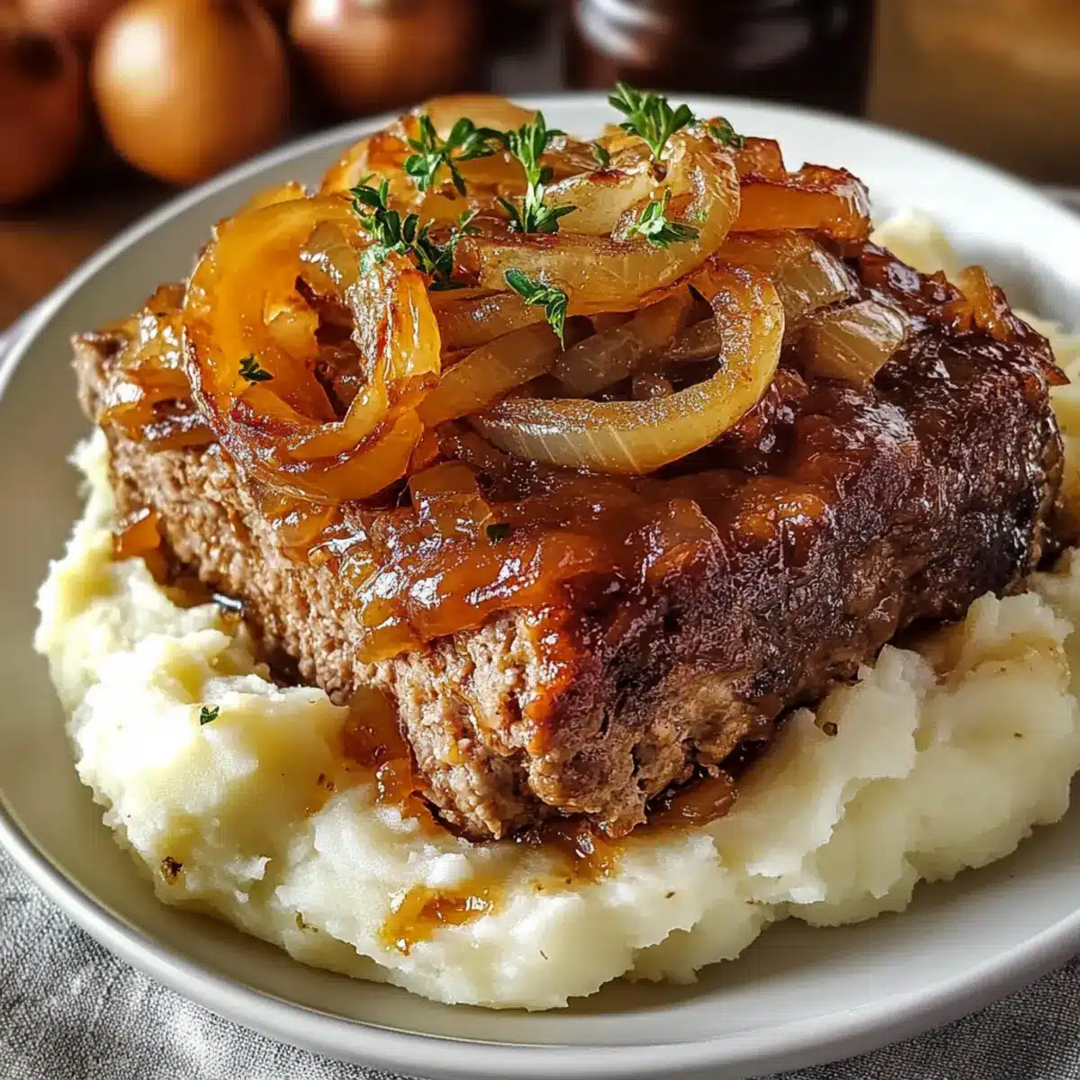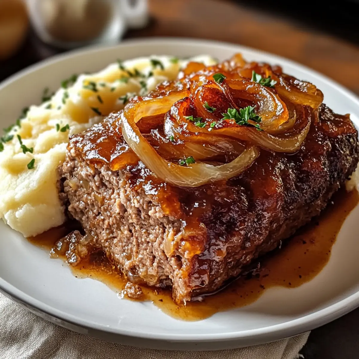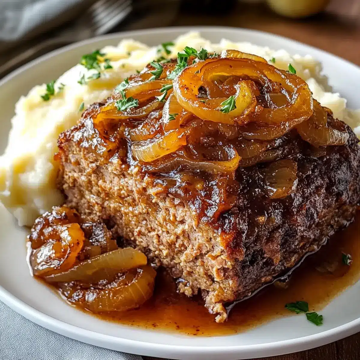 Saftiger Hackbraten mit karamellisierten Zwiebeln genießen