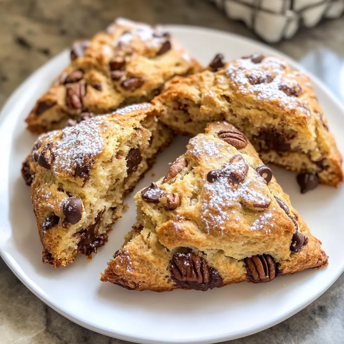 Schokoladenstückchen-Pekan-Nuss-Sccones genießen