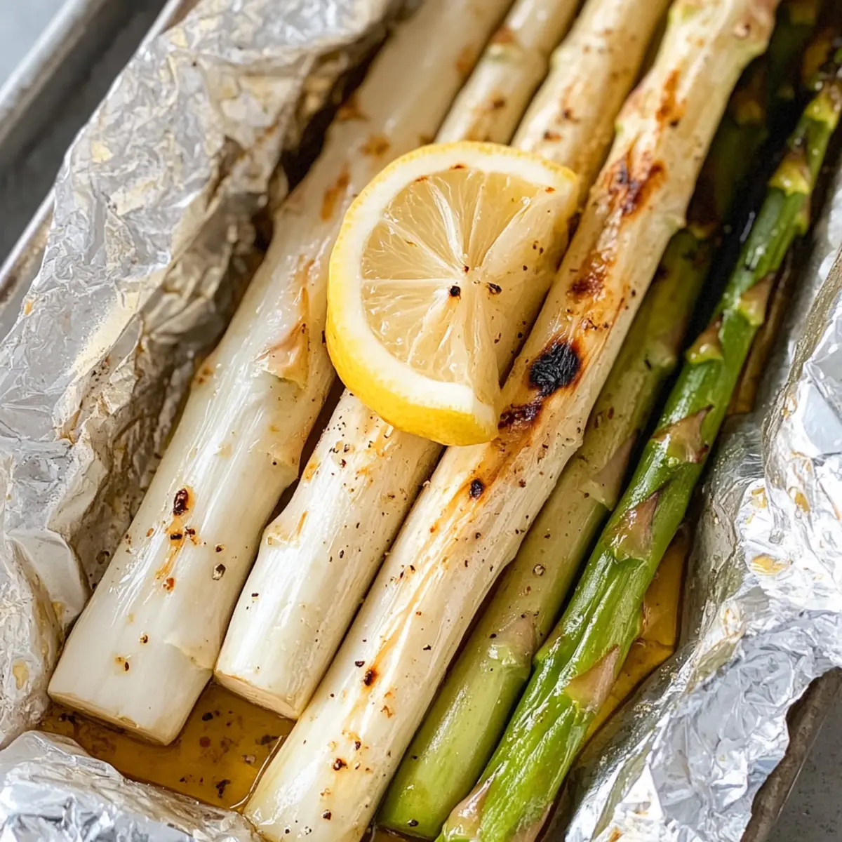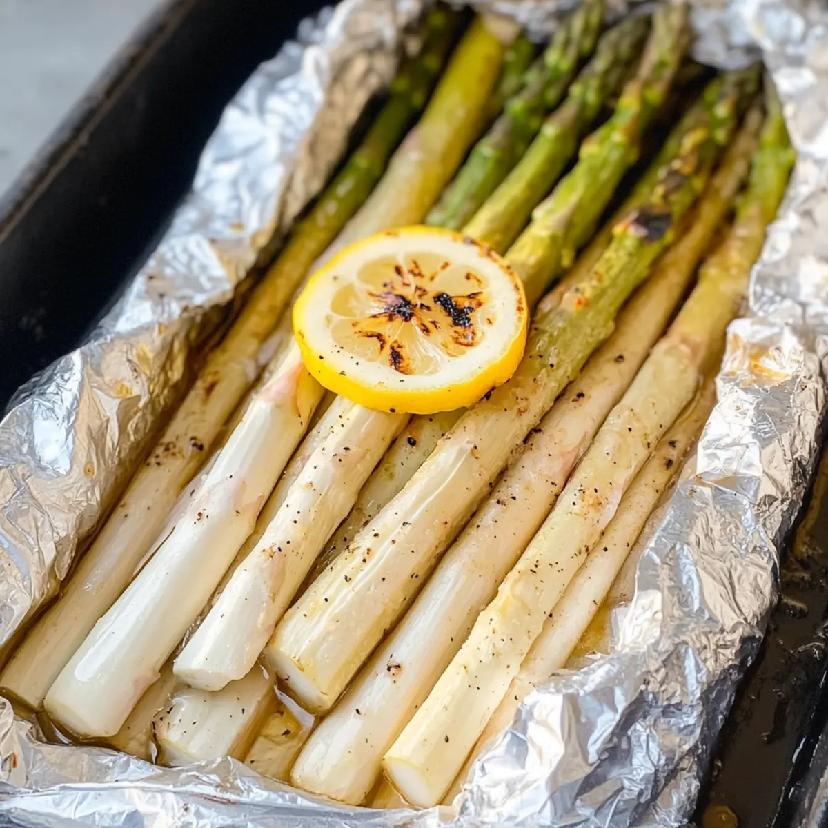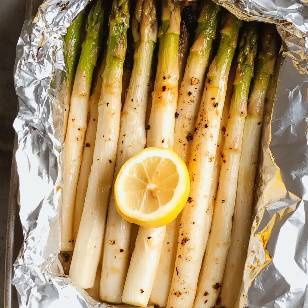 Indirekte Hitze für weißen Spargel: Verwende unbedingt indirekte Hitze, um ein Anbrennen des zarten weißen Spargels zu vermeiden; eine Aluminiumfolie hilft dabei!