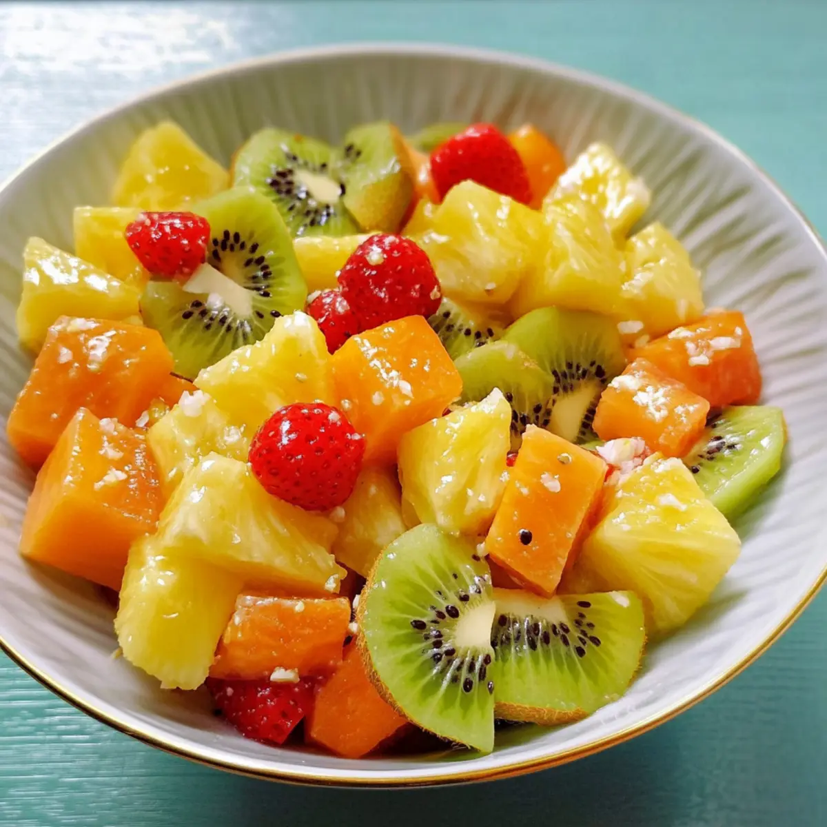 Die Sonne strahlt, und der Sommer hält Einzug – es ist Zeit für etwas Erfrischendes! Mein Rezept für den Südseesalat, eine leckere Mischung aus tropischen Früchten, wird euch nicht nur mit seiner Farbenpracht verzaubern, sondern auch das perfekte Stückchen Urlaub auf den Tisch bringen. Dieser exotische Obstsalat kombiniert die Süße von Baby-Ananas, Kiwis, Papayas und Physalis und schafft so ein harmonisches Geschmackserlebnis. Mit einer Zubereitungszeit von gerade einmal 15 Minuten ist er nicht nur ein echter Publikumsliebling für sommerliche Zusammenkünfte, sondern auch eine gesunde Wahl, die glutenfrei und vegan ist. Lust auf einen fruchtigen Genuss, der Körper und Seele erquickt? Lasst uns gemeinsam in die bunte Welt der tropischen Früchte eintauchen!