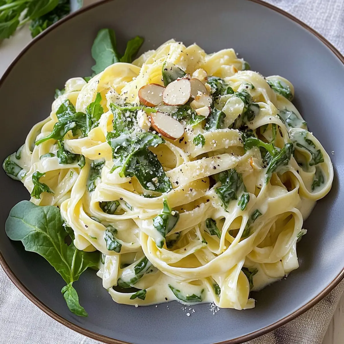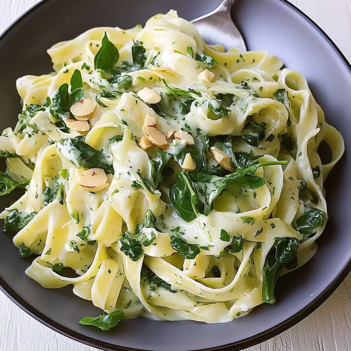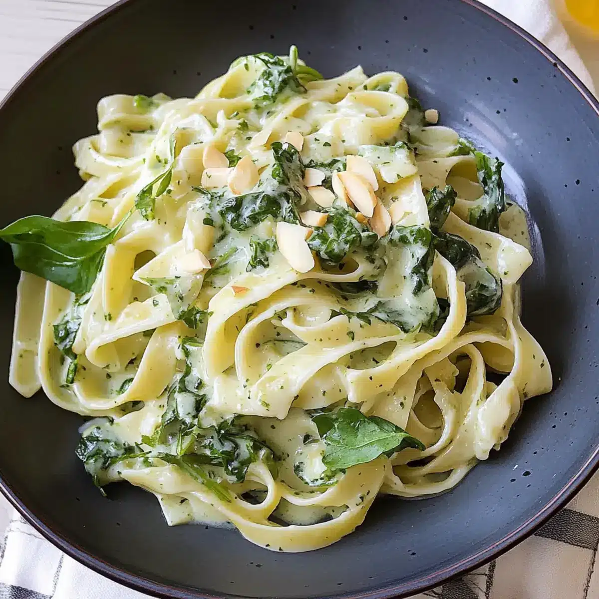Tagliatelle mit Brunnenkresse und Mandelsauce genießen