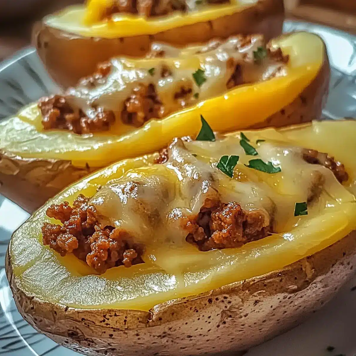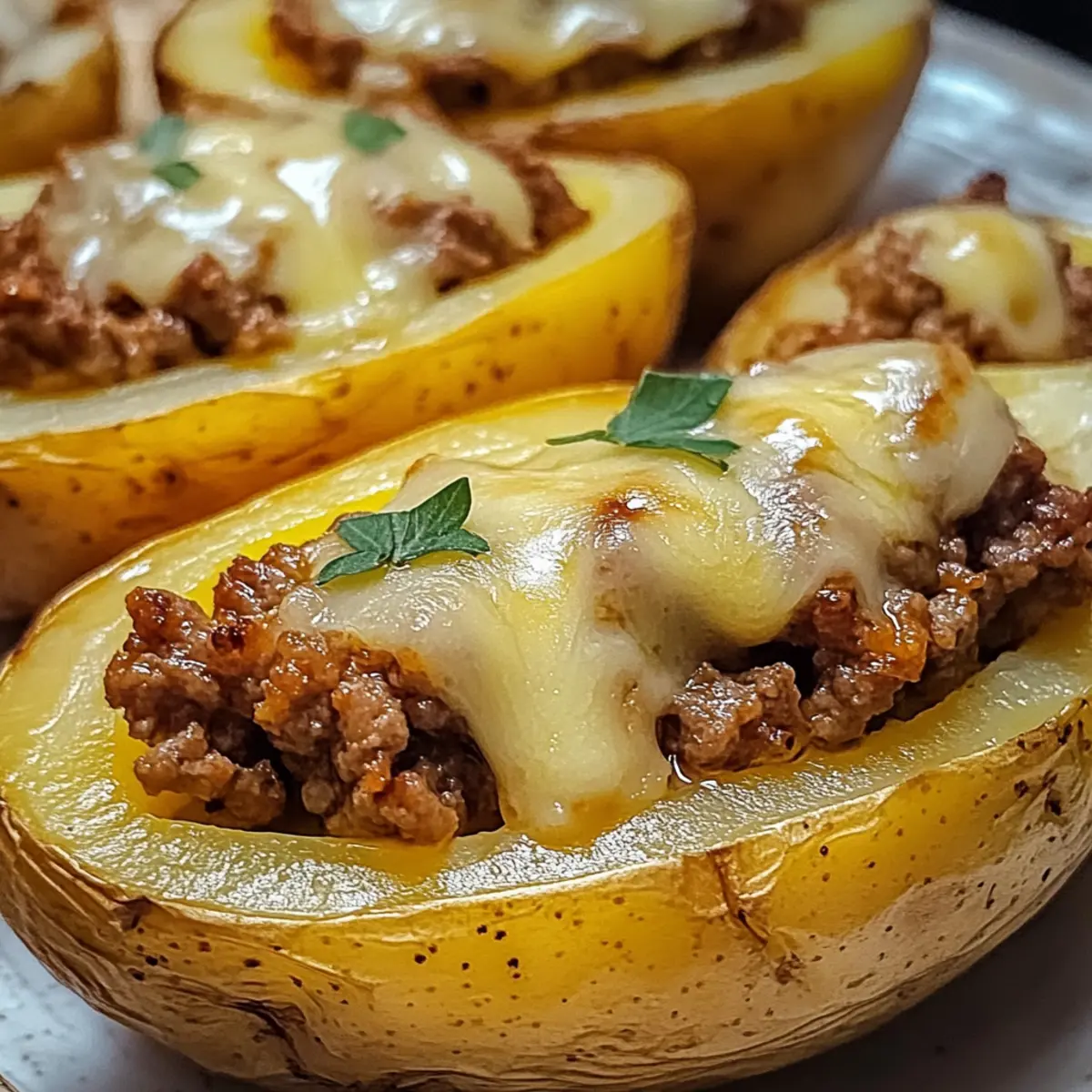 Für die Überbackenen Kartoffeln mit Käse und Hackfleisch sind festkochende oder “mehlige” Kartoffeln am besten geeignet. Diese Sorten sind ideal zum Füllen, da sie beim Backen weich und fluffig werden, ohne matschig zu werden. Achte darauf, dass die Kartoffeln groß genug sind, um eine ordentliche Menge der Füllung aufzunehmen.