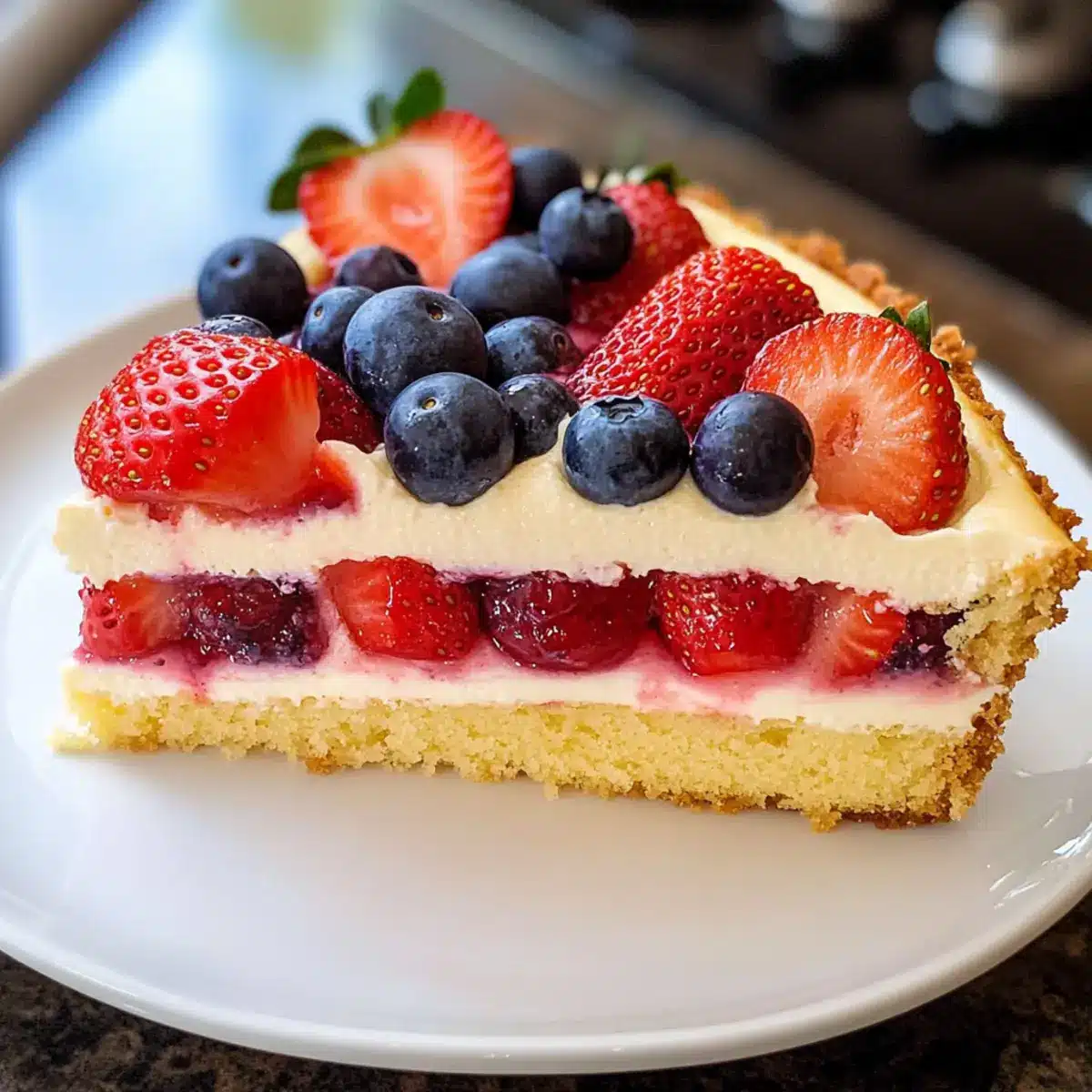 Gestalte dein Dessert unwiderstehlich lecker und gönn dir diesen veganen Erdbeer-Blaubeer-Kuchen mit Vanillepudding – die perfekte Erfrischung für warme Tage!