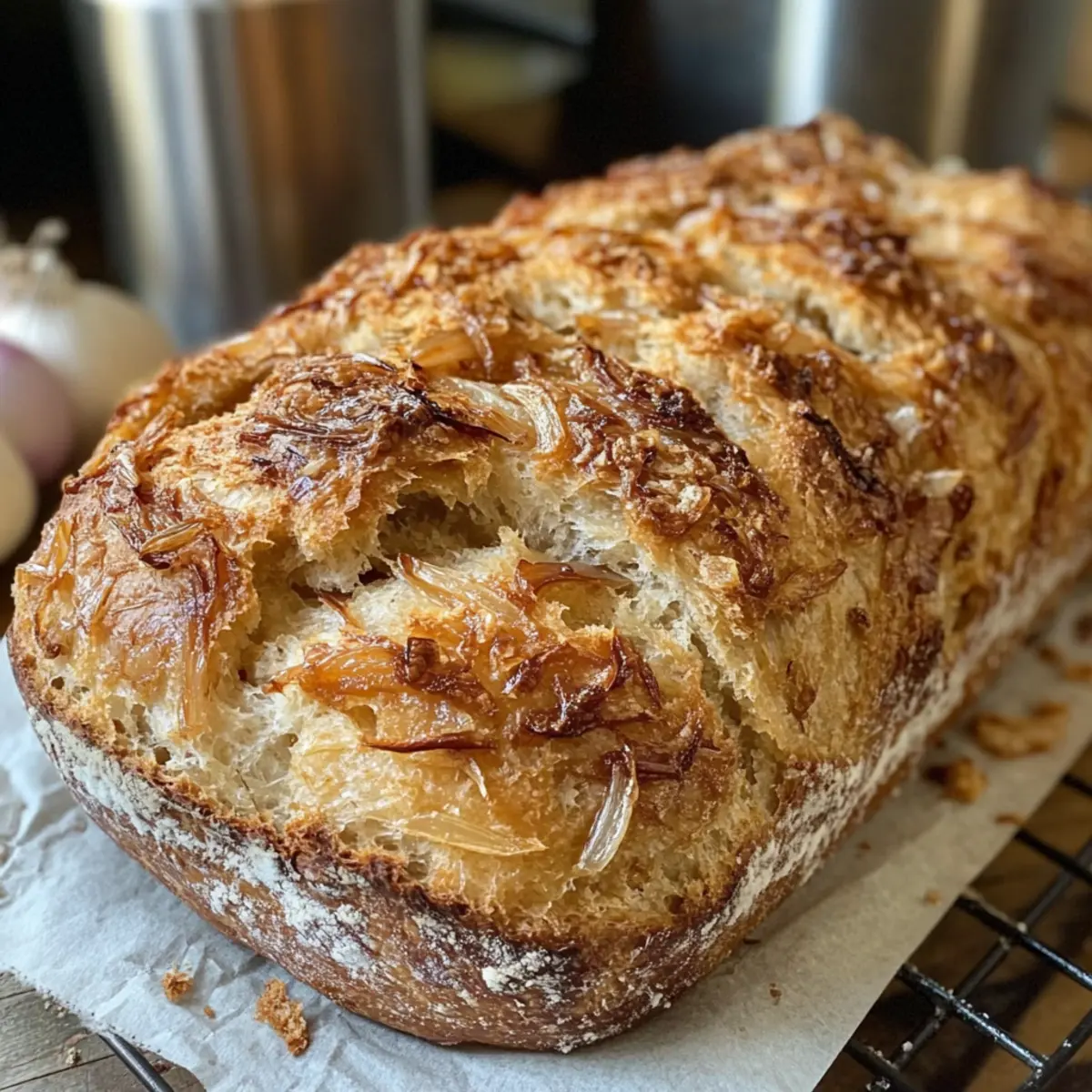 Vervollständigen Sie Ihr Zwiebelbrot mit Röstzwiebeln und genießen Sie die Freude am Backen!